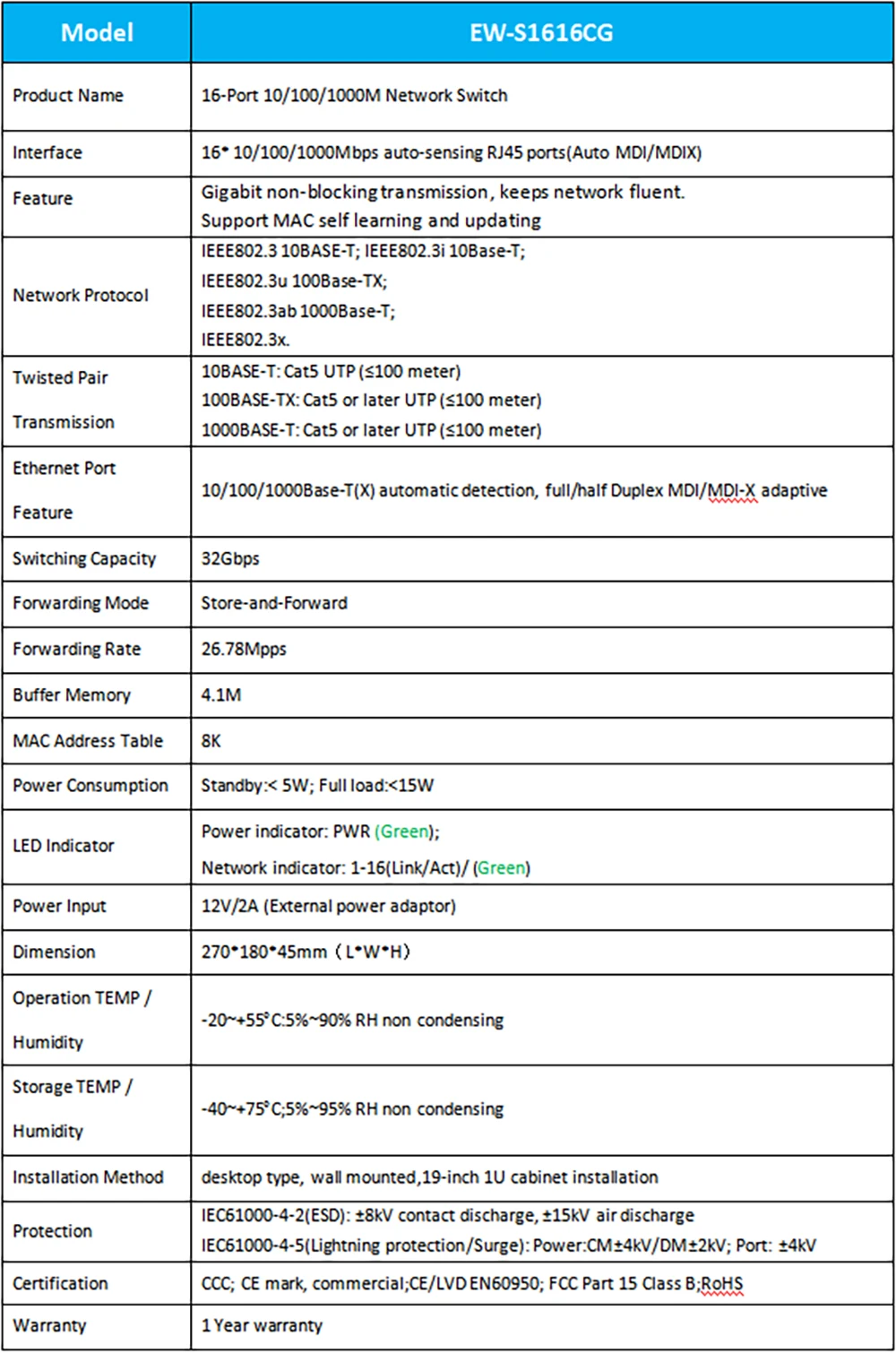 Interruptor Ethernet EWIND de 16 puertos 100/1000Mbps, interruptor de red Gigabit dúplex completo para cámara IP/interruptor inteligente AP AI inalámbrico.