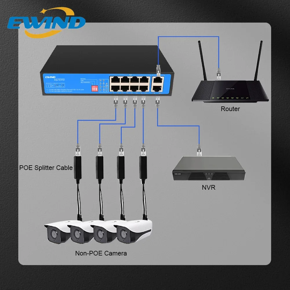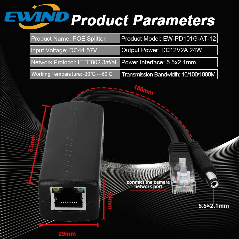 EWIND Gigabit POE Splitter 10/100/1000Mbps IEEE802.3af/AT 44-57V a 12V Fuente de alimentación para cámara IP AP inalámbrico o dispositivo no POE