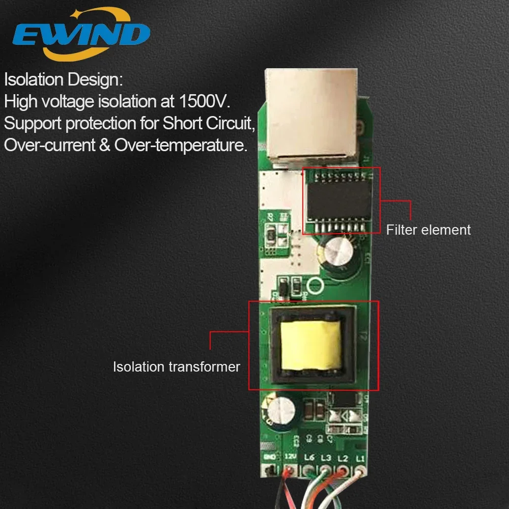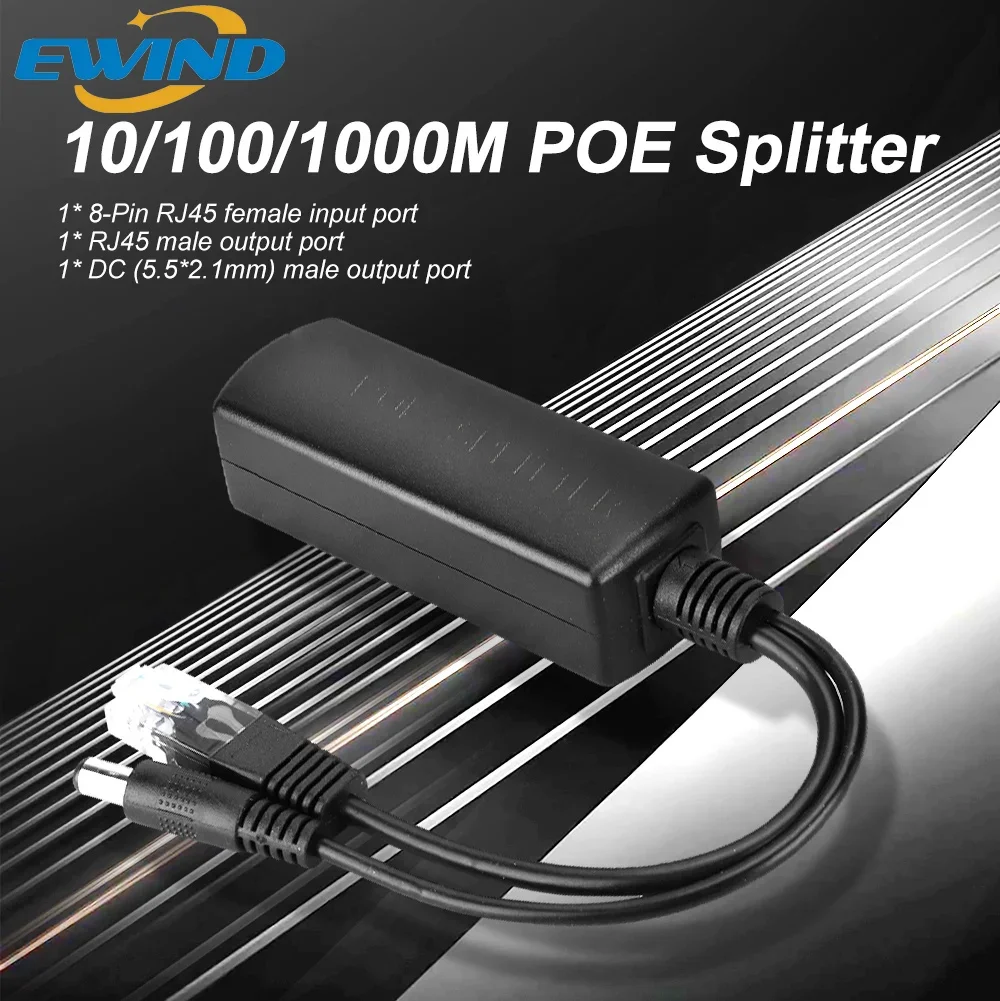 Comprar EWIND-Divisor Gigabit POE de 10/100/1000Mbps, IEEE802.3af/at, 44-57V a 12V, fuente de alimentación para cámara IP, dispositivo inalámbrico AP o no POE