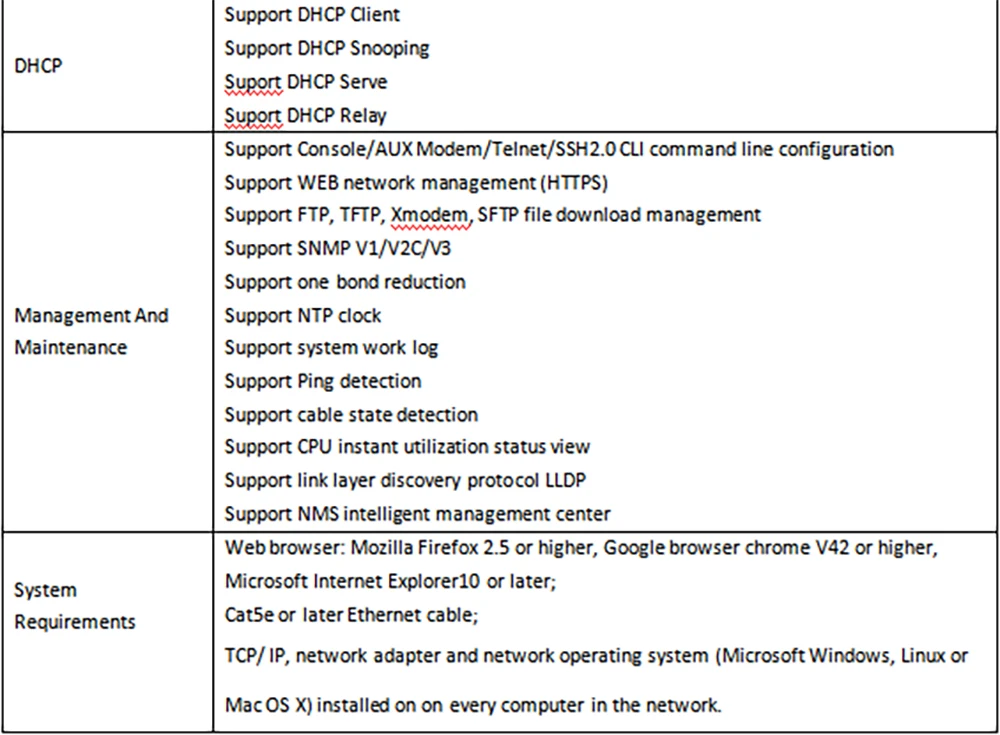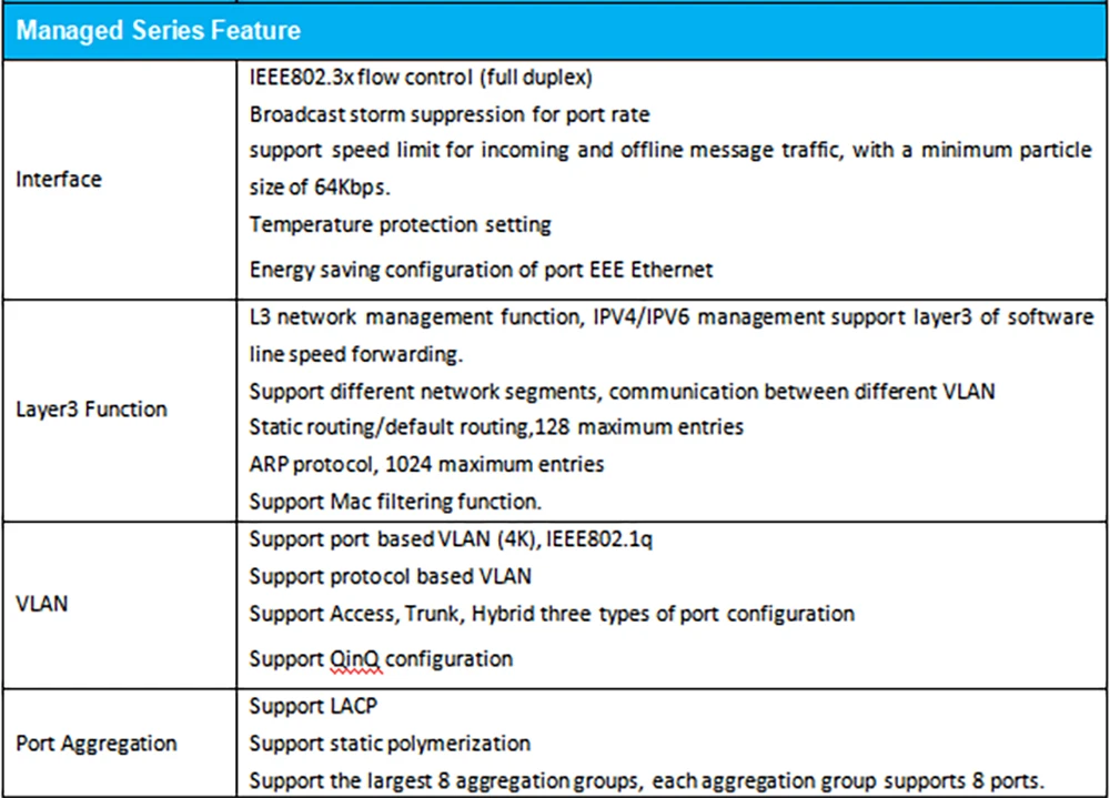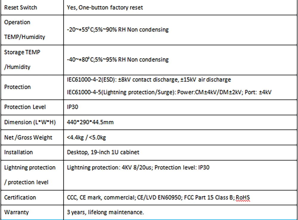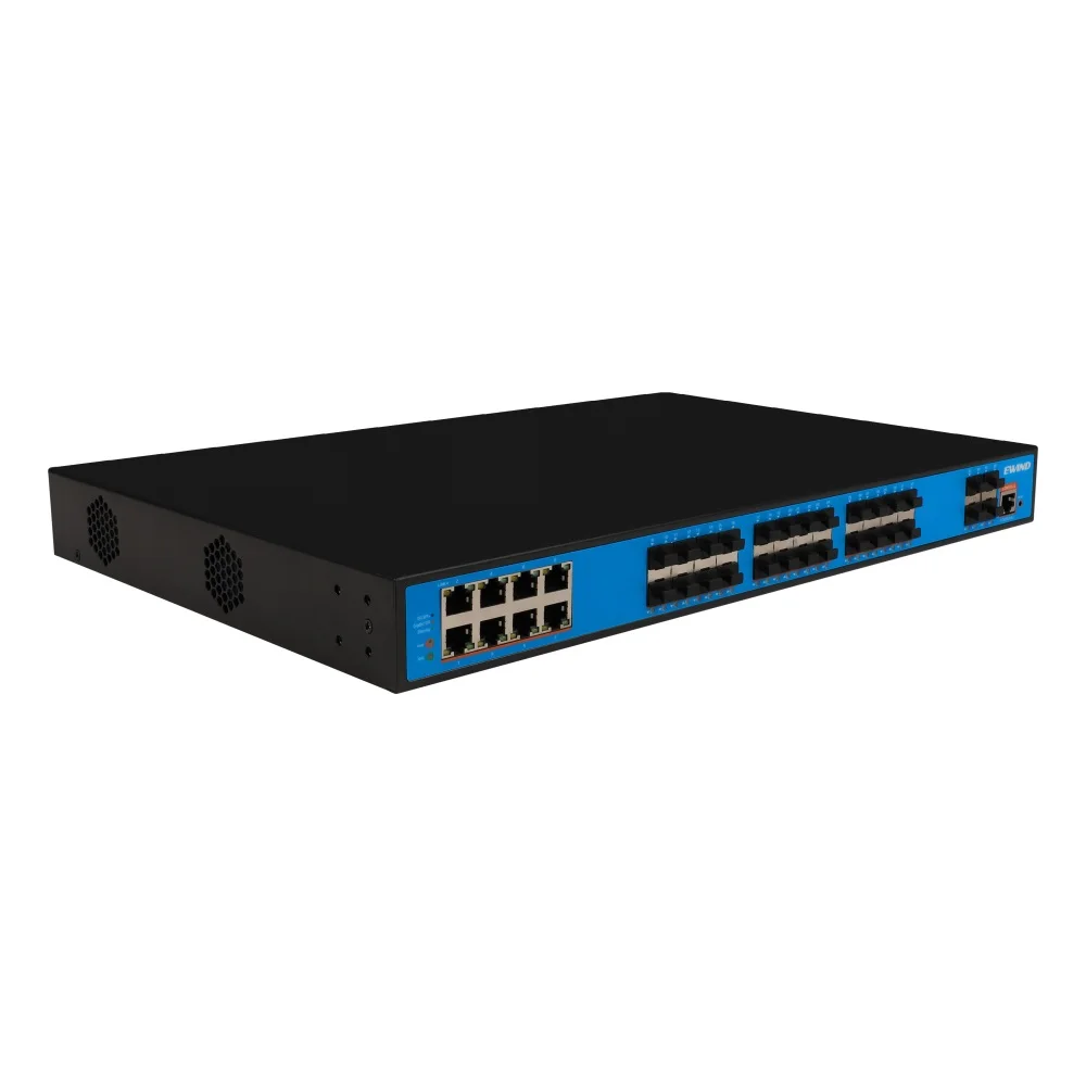 8*10/100/1000M puertos RJ45 + 24*100/1000M puerto de fibra SFP + 4*1/2.5/10G(SFP +) puertos de fibra Ethernet gestionado convergencia/Core/interruptor;