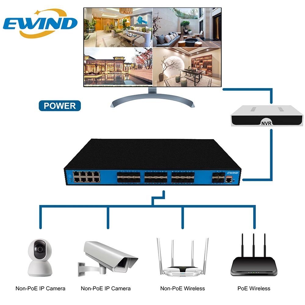 Comprar EWIND-interruptor Ethernet gestionado de capa de enlace ascendente de 10G con 8 puertos RJ45 de 10/100/1000M y ranura de fibra SFP de 24 1000M y 4 ranuras SFP de 10G +