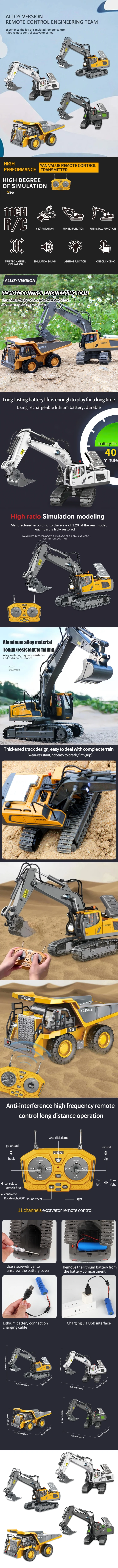 Comprar Excavadora de 11 canales, camión volquete de 9 canales, 2,4G, 1:20, Control remoto, simulación de plástico de aleación, vehículo de construcción, modelo de juguete