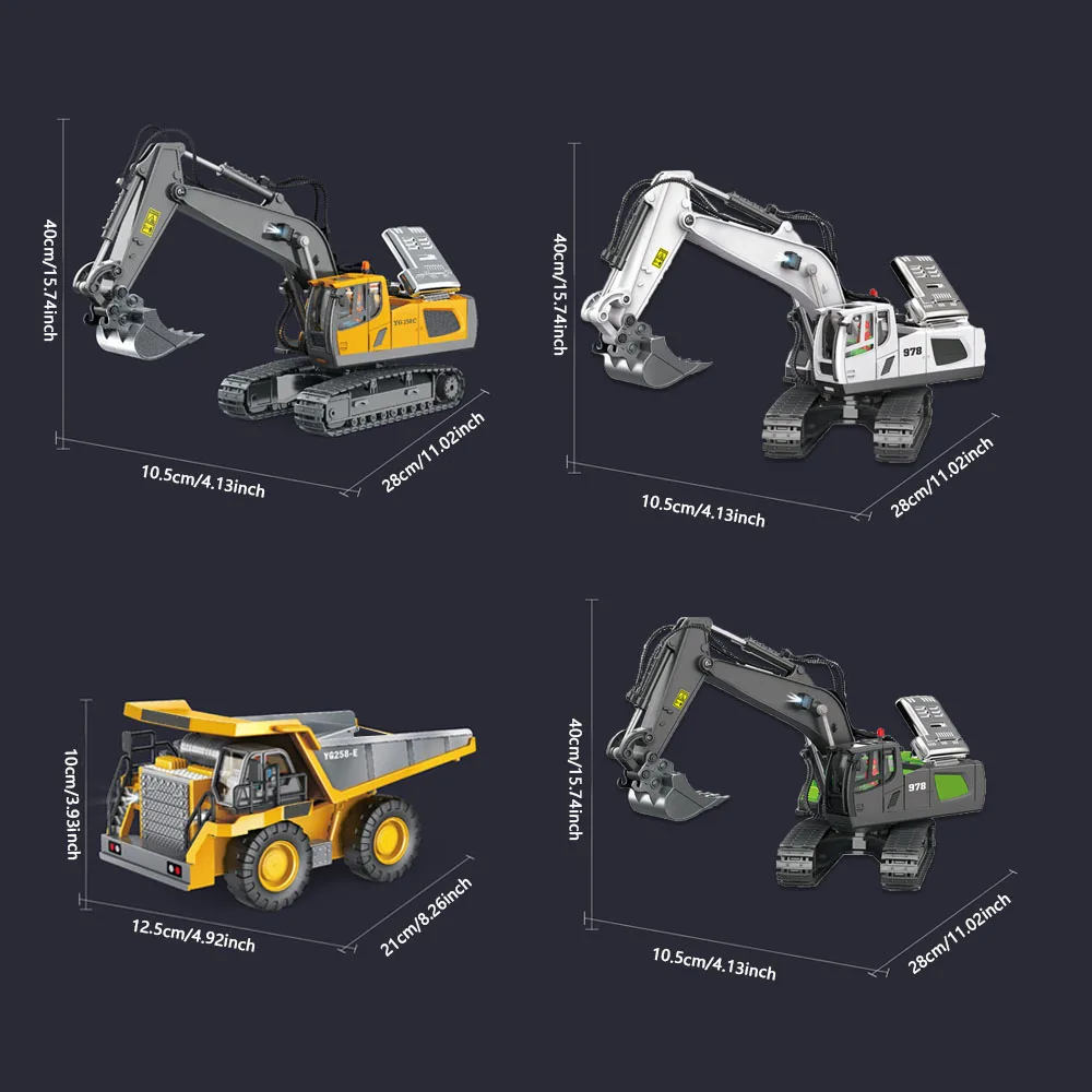 Comprar Excavadora de 11 canales, camión volquete de 9 canales, 2,4G, 1:20, Control remoto, simulación de plástico de aleación, vehículo de construcción, modelo de juguete