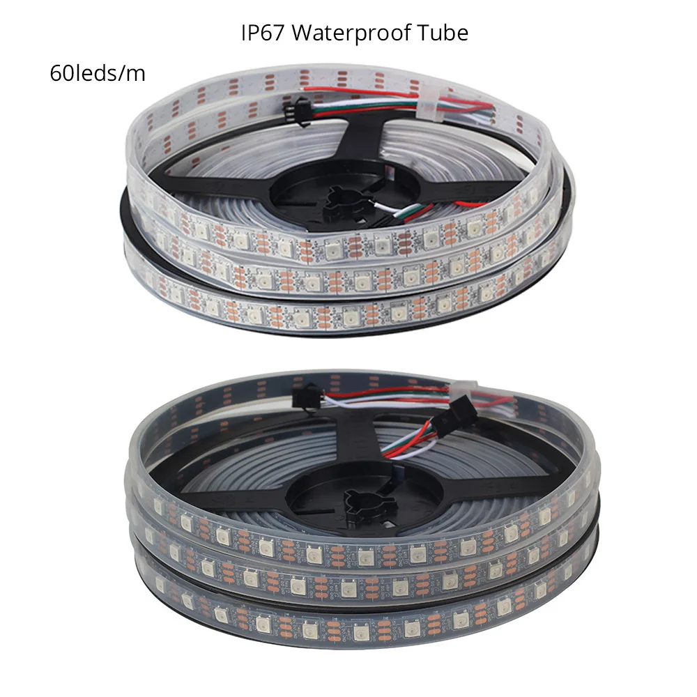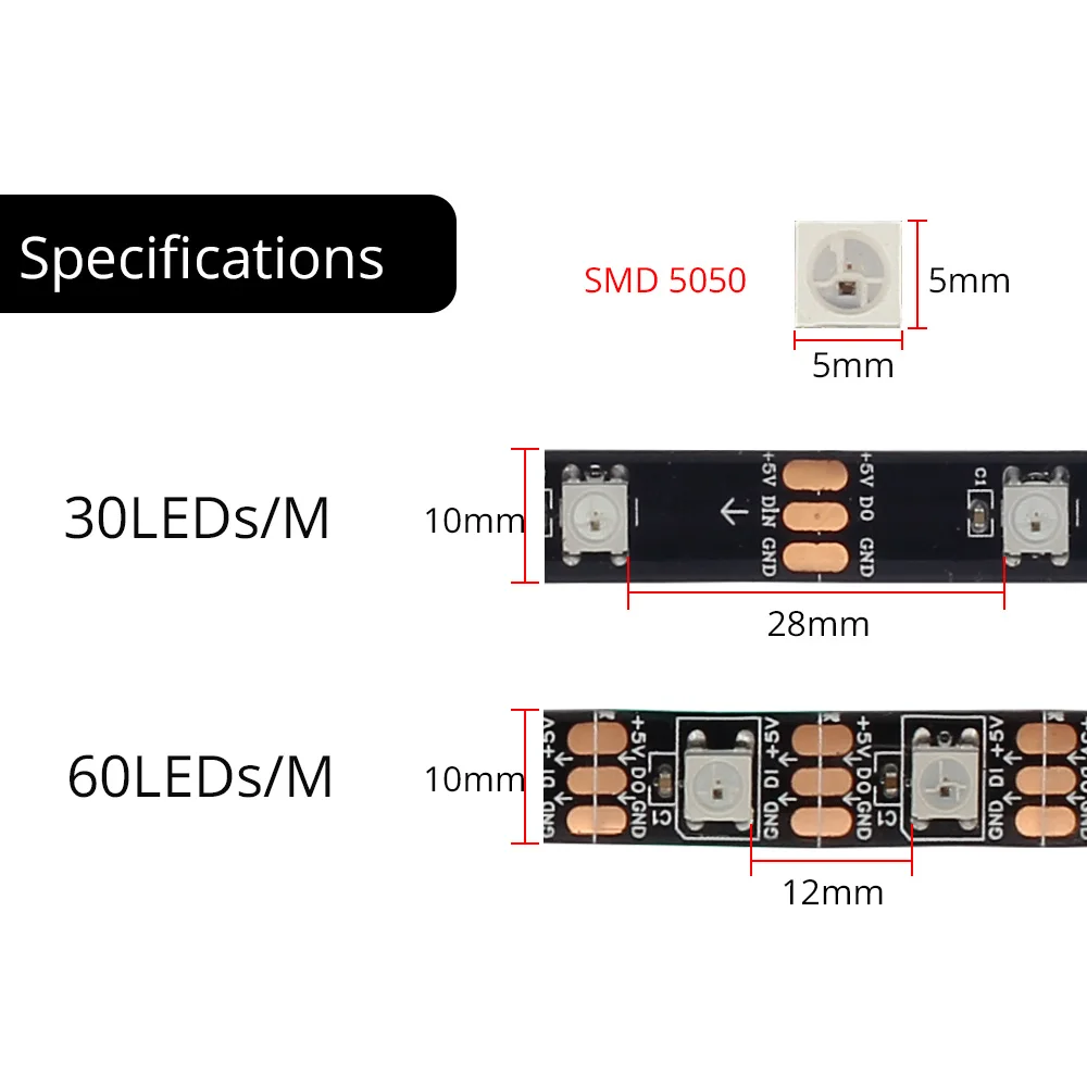 Excellux 5M WS2812 WS2812B Pixel LED Strip 5050 RGB 30/60LEDs DC5V WS2812 Digital LED Pixel Strip Impermeable Blanco/Negro PCB