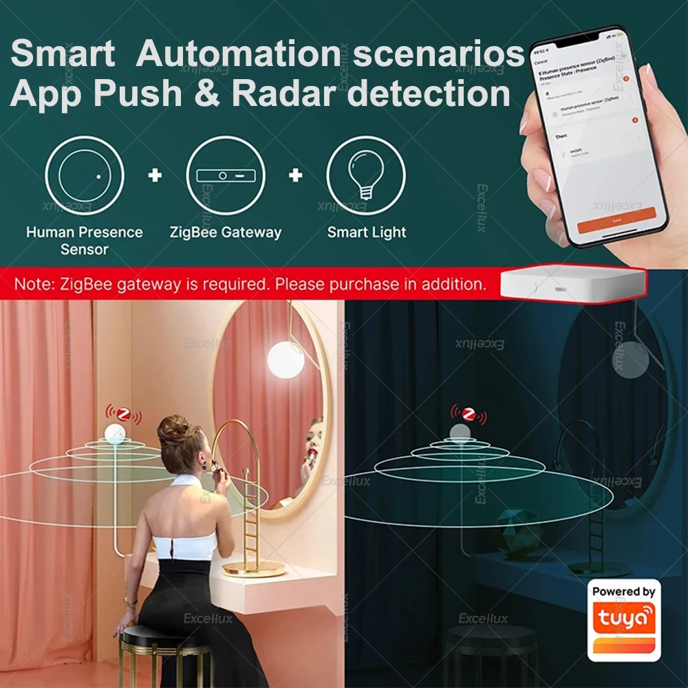 Se requiere una puerta de enlace Tuya ZigBee para este sensor de presencia humana ZigBee, que funciona como puente central para todos los dispositivos inteligentes Tuya ZigBee con una señal extremadamente estable y una muy buena necesidad para la inteligencia de toda la casa. (Nota: el concentrador Tuya ZigBee es altamente recomendado por su compatibilidad más amplia que otros concentradores)