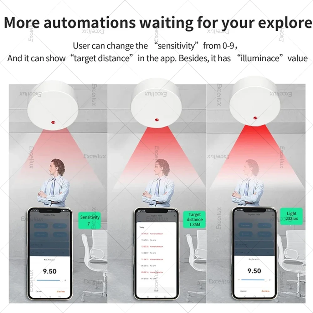 El monitor de iluminancia en la aplicación Tuya Smart permite su función inteligente como conexión de escena inteligente con otros dispositivos inteligentes, especialmente las luces de su casa se encienden/apagan automáticamente a medida que cambia el brillo;Además, puede vincular inteligentemente el sensor a otros dispositivos domésticos inteligentes para la automatización del hogar.
