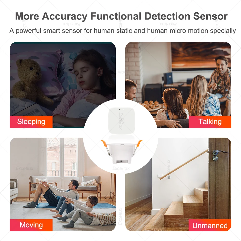Destacado como presencia humana, estática humana, micromovimiento humano y detección de movimiento de movimiento humano para detectar la presencia o ausencia de personas en el área, incluso para detectar el estado estático, como el personal que duerme con precisión con la detección de radar mmWave incluida.