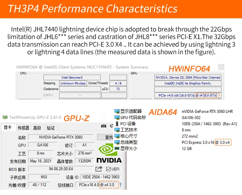 Versión mejorada TH3P4G3, base para tarjeta gráfica compatible con Thunderbolt. Si su computadora portátil tiene una interfaz 3 Compatible con Thunderbolt o 4 compatible con Thunderbolt, puede usarla para conectar una tarjeta gráfica externa para jugar, editar videos, procesar imágenes, etc.