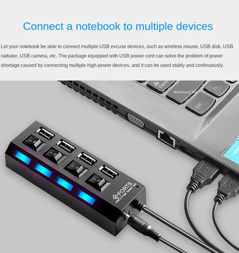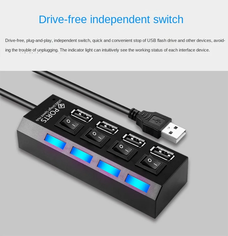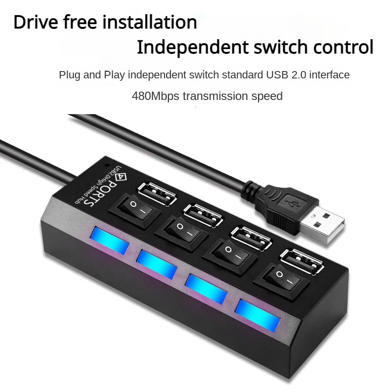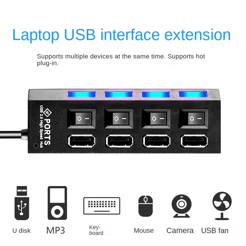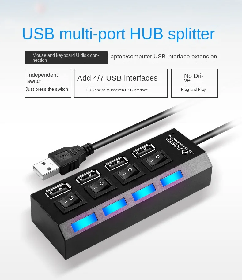 Comprar Expansor de adaptador Usb 2,0 de alta velocidad, divisor múltiple, interruptor de lámpara Led para Pc, portátil, 4 puertos, 7 puertos