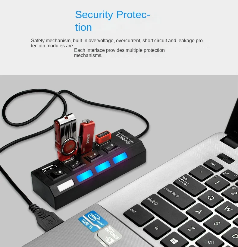 Conmutadores individuales para cada puerto: Cada Puerto USB de este HUB viene con su propio interruptor, lo que le permite controlar la potencia y el flujo de datos con facilidad. Esta característica garantiza la máxima flexibilidad y comodidad.