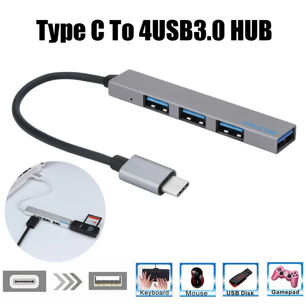 HUB USB 4 EN 1: cuatro puertos USB 3.0 conectados con un puerto de salida tipo C, que proporcionan una alta velocidad de transferencia de datos de hasta 5 Gbp/s.Luz indicadora de trabajo LED, el estado de funcionamiento es claro de un vistazo. Se utiliza sin necesidad de controladores externos ni energía.