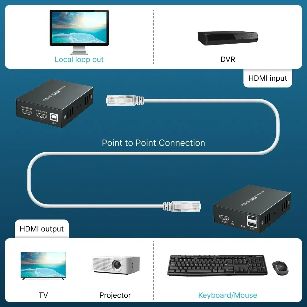 Envía señales de vídeo y audio HDMI sin problemas hasta 50M a través de un solo cable CAT6.