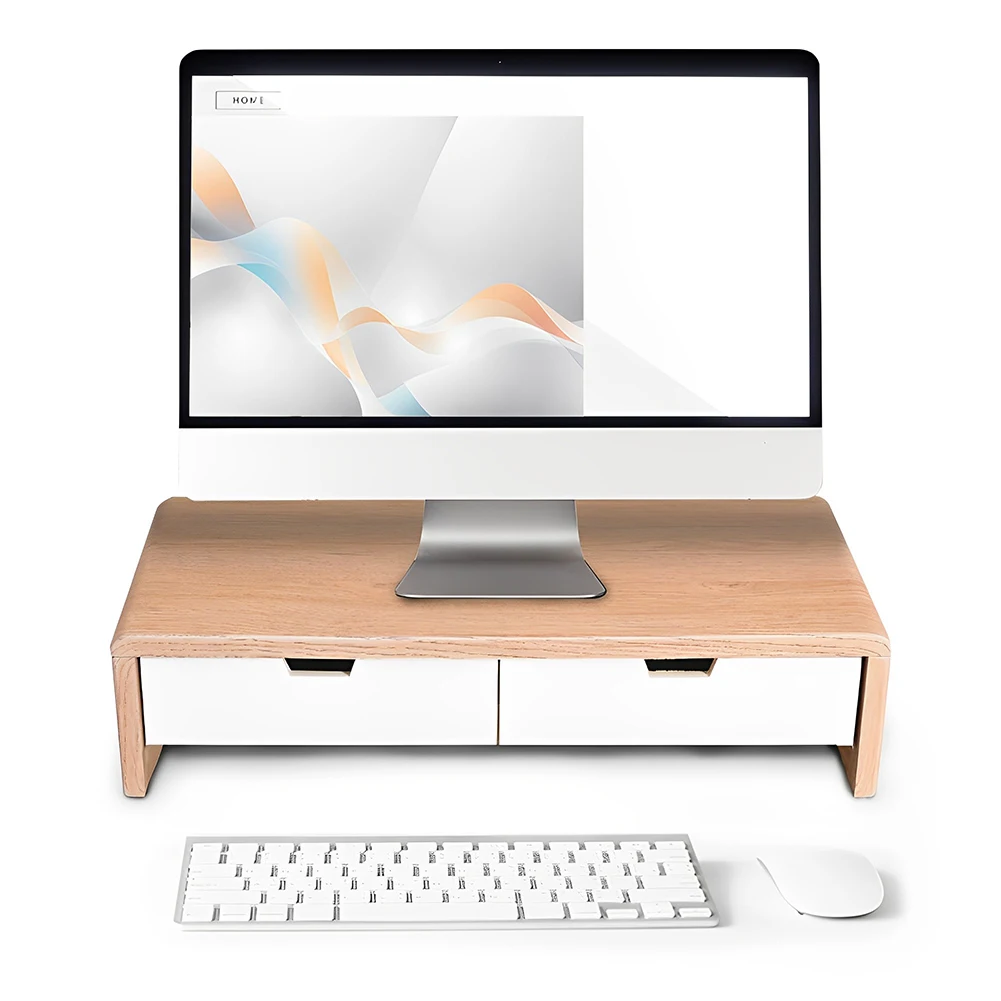 3.Madera maciza de primera calidad:Elaborado con madera maciza seleccionada, este soporte para monitor de pantalla presenta una hermosa veta y una excelente resistencia a la humedad, lo que garantiza durabilidad y una apariencia elegante que complementa su espacio de trabajo.