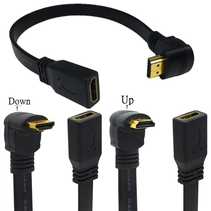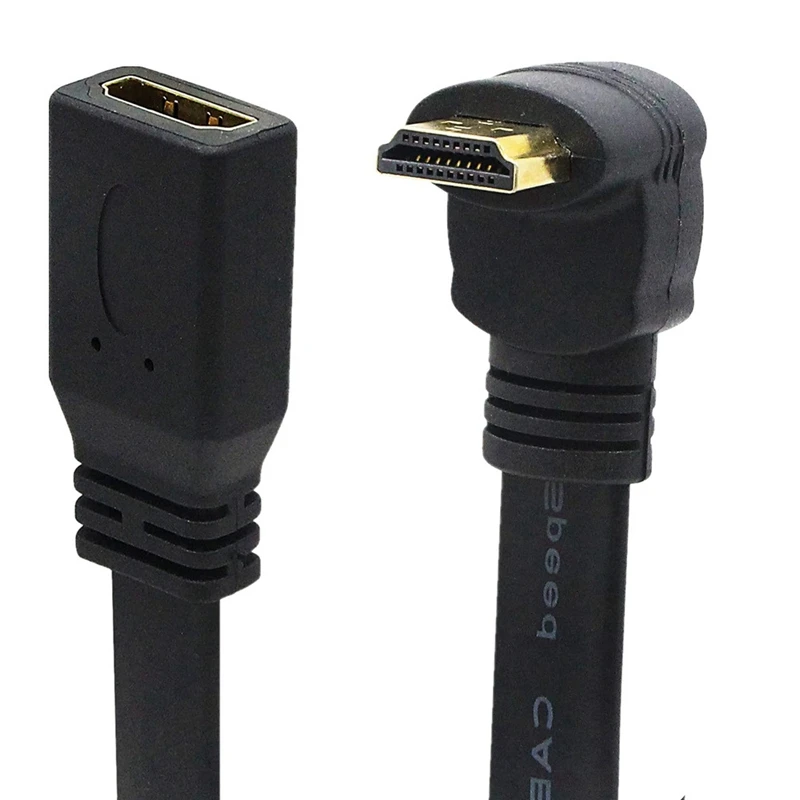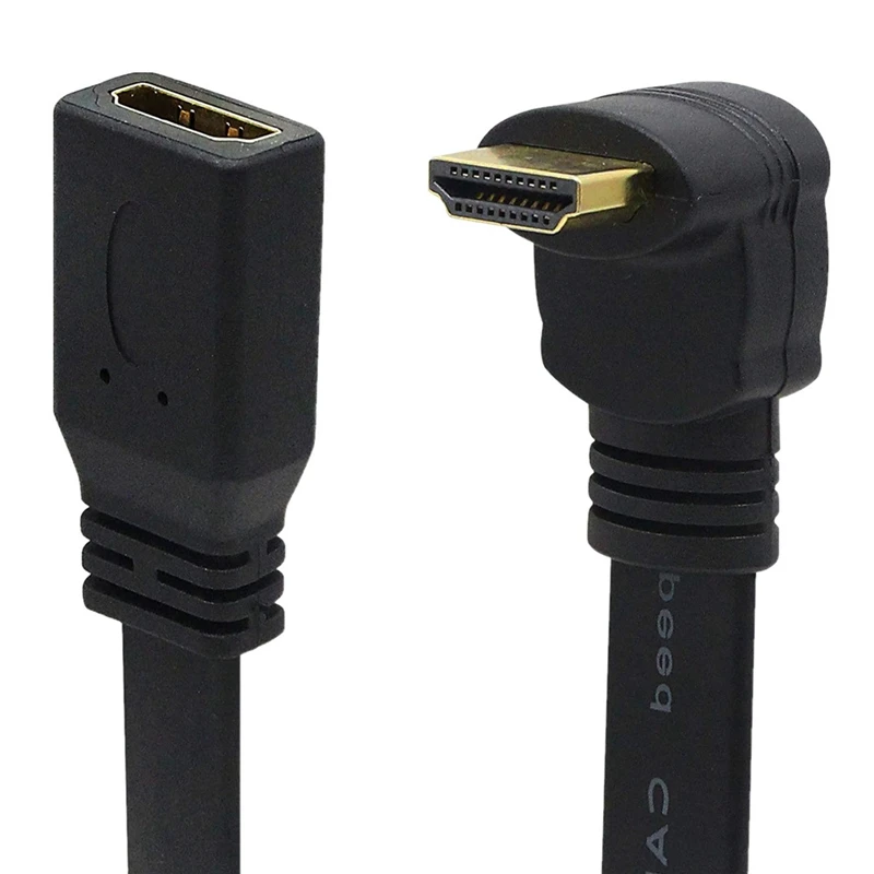 Comprar Extensión de Cable plano macho A hembra, Cable HDTV de 30cm, 1ft, 1,4 v, 90 grados, arriba y abajo, compatible con HDMI