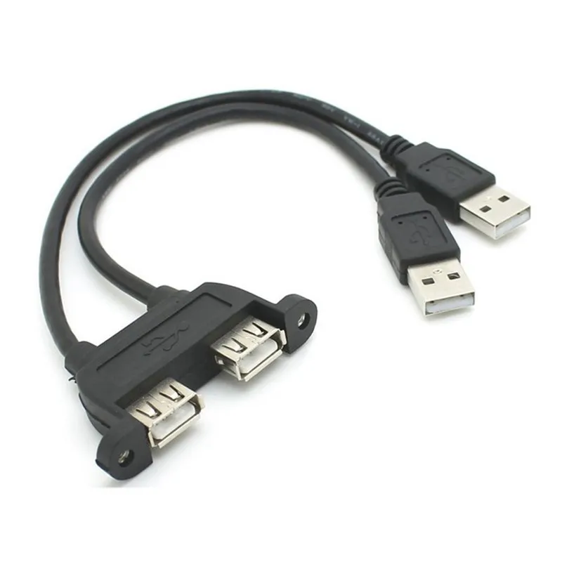 Combo de cable de extensión USB 2.0 macho a hembra dual con orificios de montaje en panel de tornillos