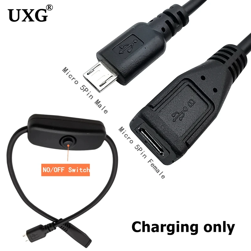 Comprar Extensión de fuente de alimentación Micro USB con interruptor de encendido/apagado solo Cable de carga interruptor de encendido/apagado para Raspberry Pi Envío Directo