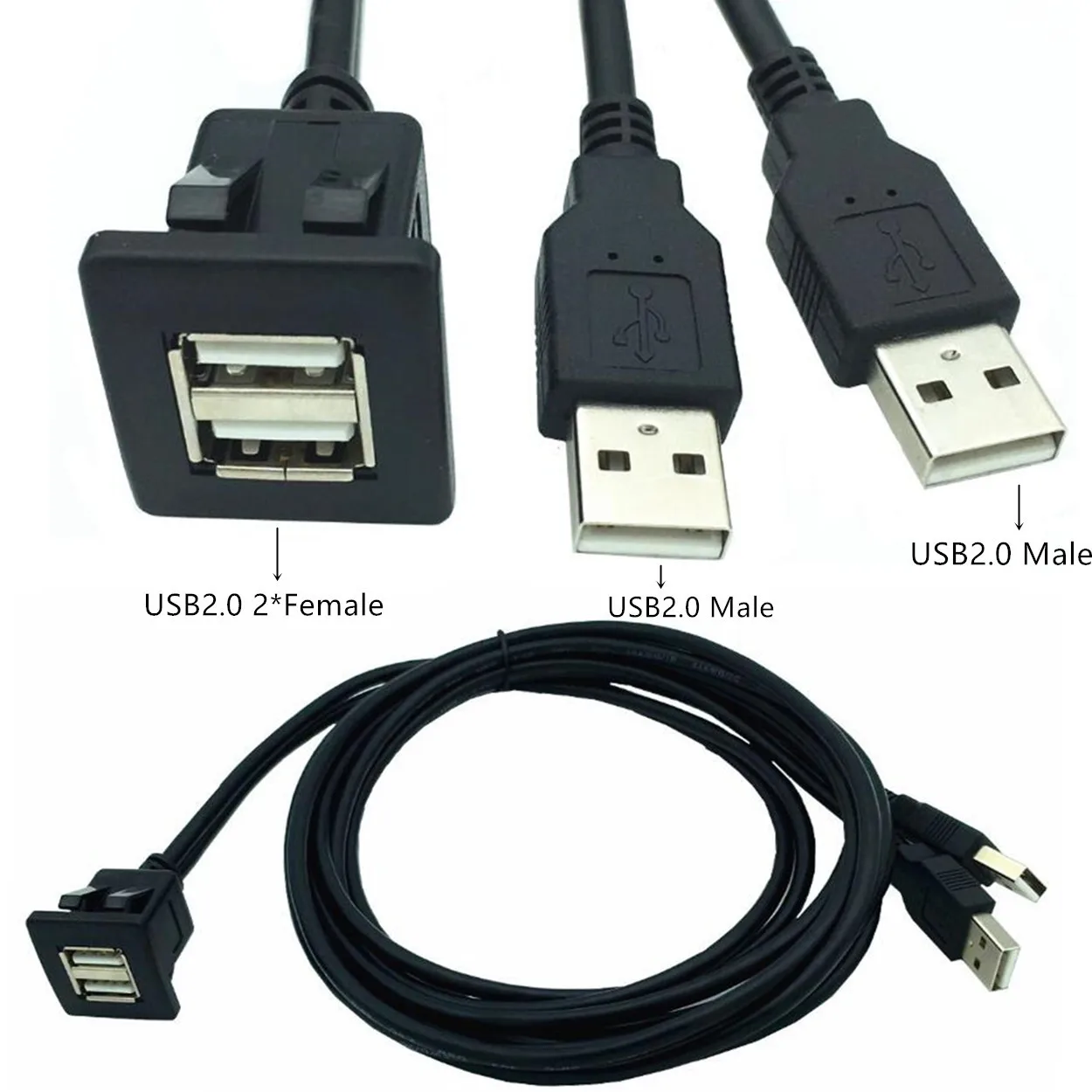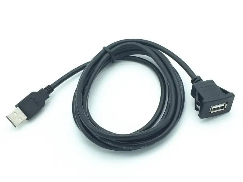 Cable de extensión de montaje en panel empotrado AUX USB macho a hembra para salpicadero de motocicleta de coche, camión, barco (cabeza cuadrada)