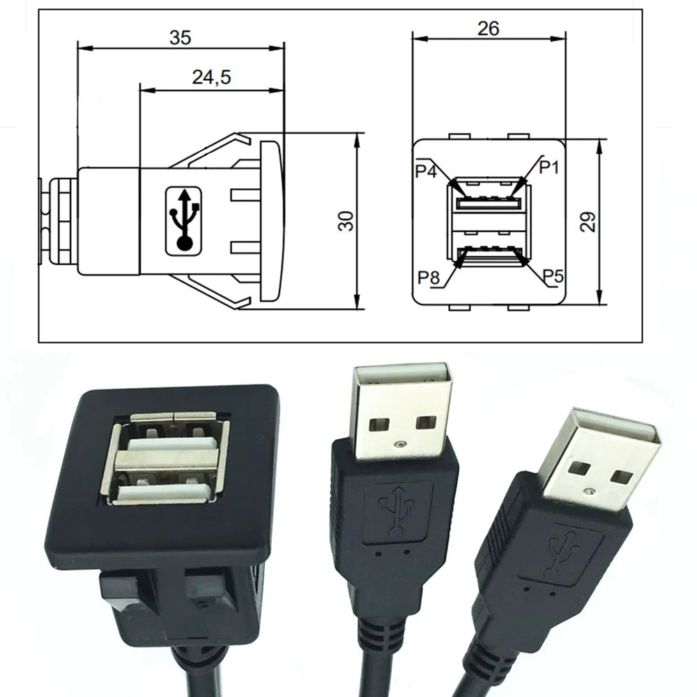 Cable de extensión de datos del panel del tablero de motocicleta resistente a la línea de agua USB 3.0 de doble puerto 1 metro/2 metros;