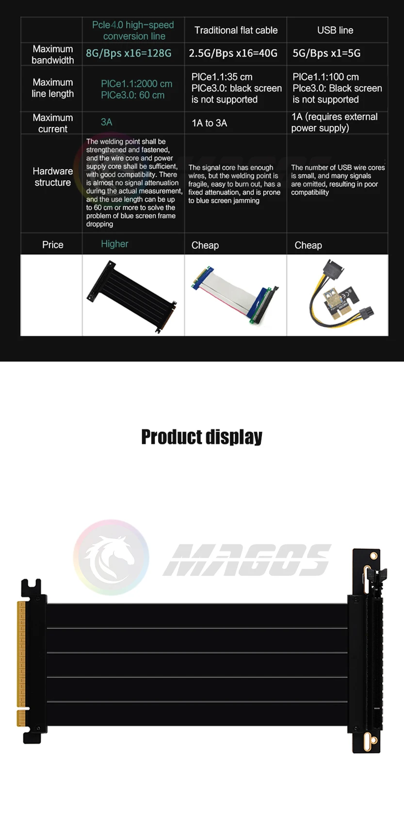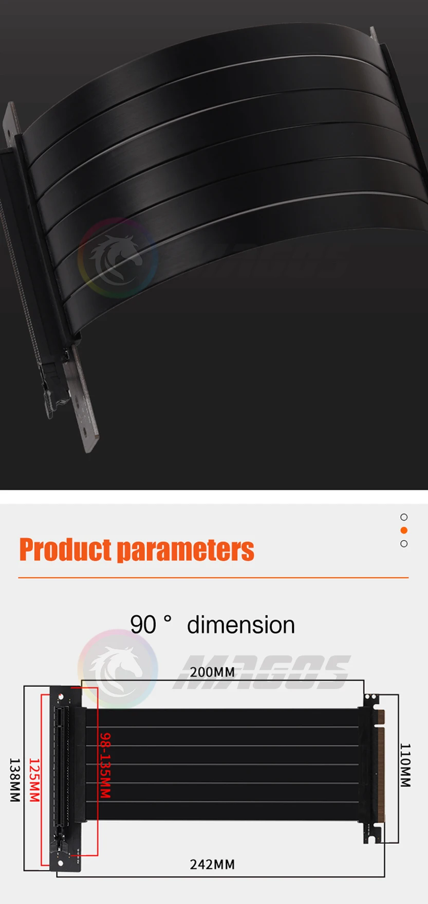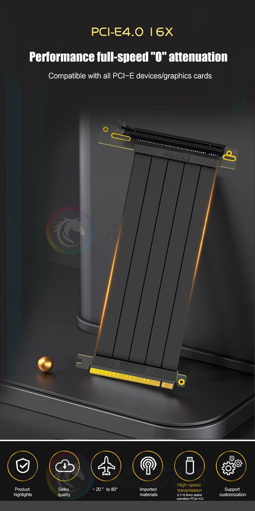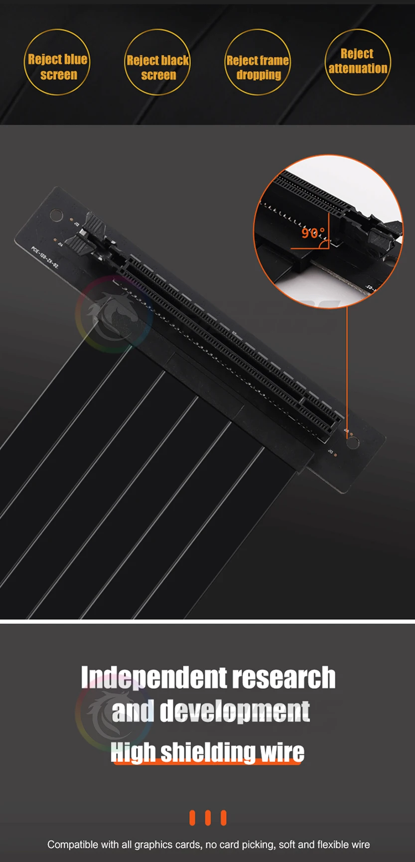 Comprar Extensión de tarjeta de vídeo con cable elevador PCIE 4.0 X16 blindado flexible 90 ° Montaje GPU Express Sin pérdidas Negro/Blanco