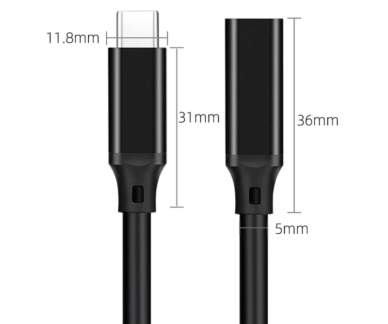 Comprar Extensión USB 3,1 para MacBook Pro, Cable de datos de vídeo de carga rápida, PD100W, 10gbps, 4K, 60Hz, macho a hembra, tipo C