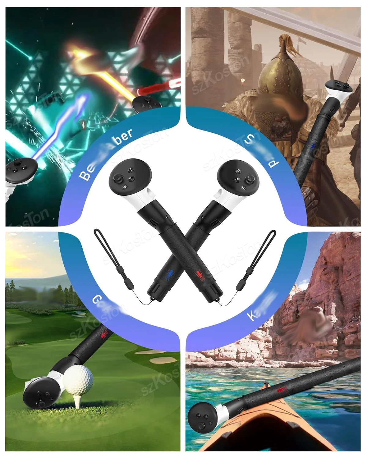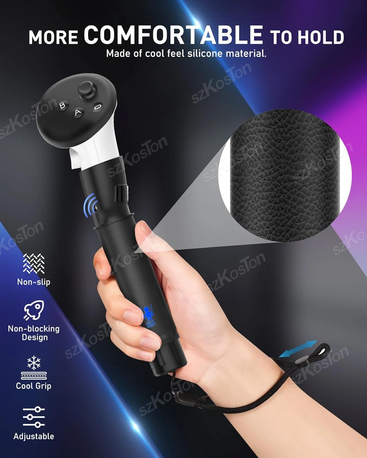 Agarre cómodo: el mango del palo de golf está hecho de material de silicona, lo que proporciona un agarre fresco y cómodo que es resistente al sudor y antideslizante.El diseño hueco de la carcasa de ABS ayuda a prevenir la interrupción de la señal, lo que le permite sumergirse por completo en el mundo de los juegos de realidad virtual.Szkoston