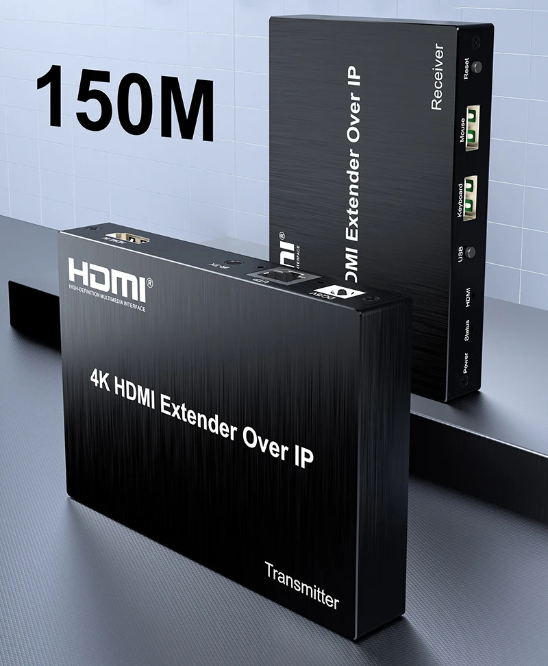 Comprar Extensor 4K 150M HDMI KVM Rj45 sobre Cat5e Cat6, Cable Ethernet sobre red IP, interruptor uno a muchos receptores, compatible con teclado de ratón