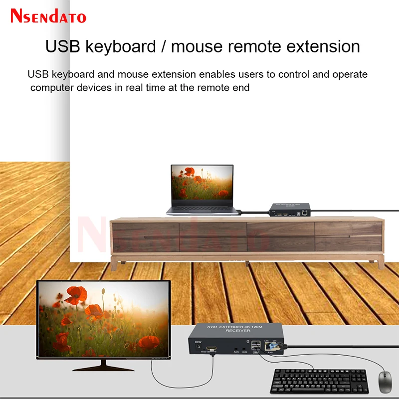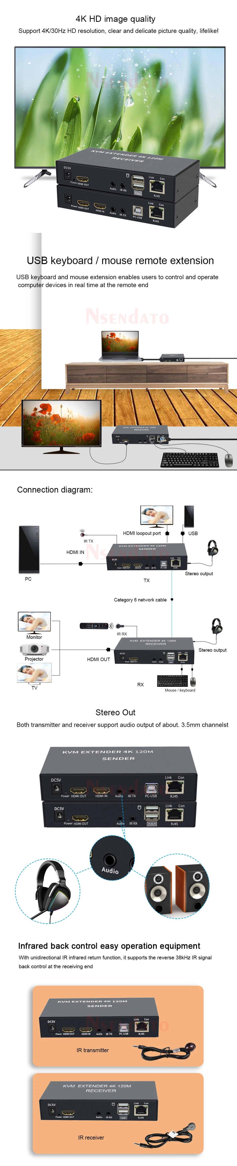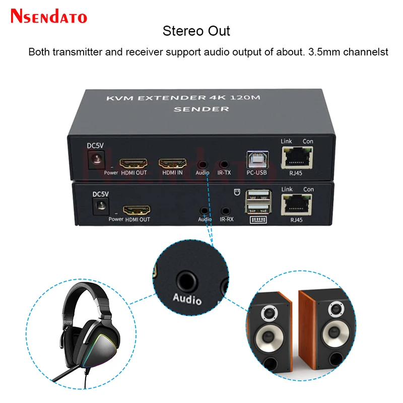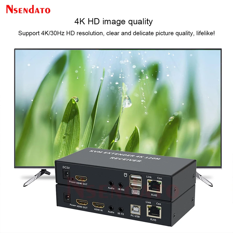 4K HDMI USB KVM Extender 120M sobre Cat6 KVM Extender HDMI RJ45 sobre red Lan KVM HDMI Extender con USB para teclado de ratón