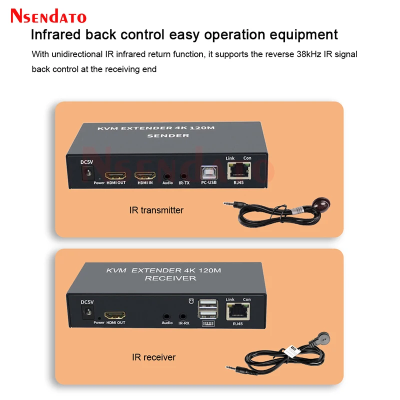 Comprar Extensor 4K HDMI USB KVM 120M sobre Cat6 KVM extensor HDMI RJ45 sobre red Lan KVM HDMI extensor con USB para teclado de ratón
