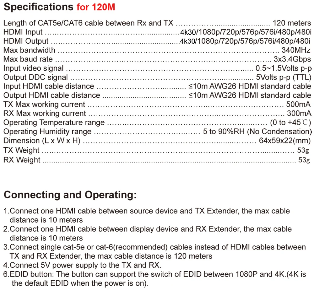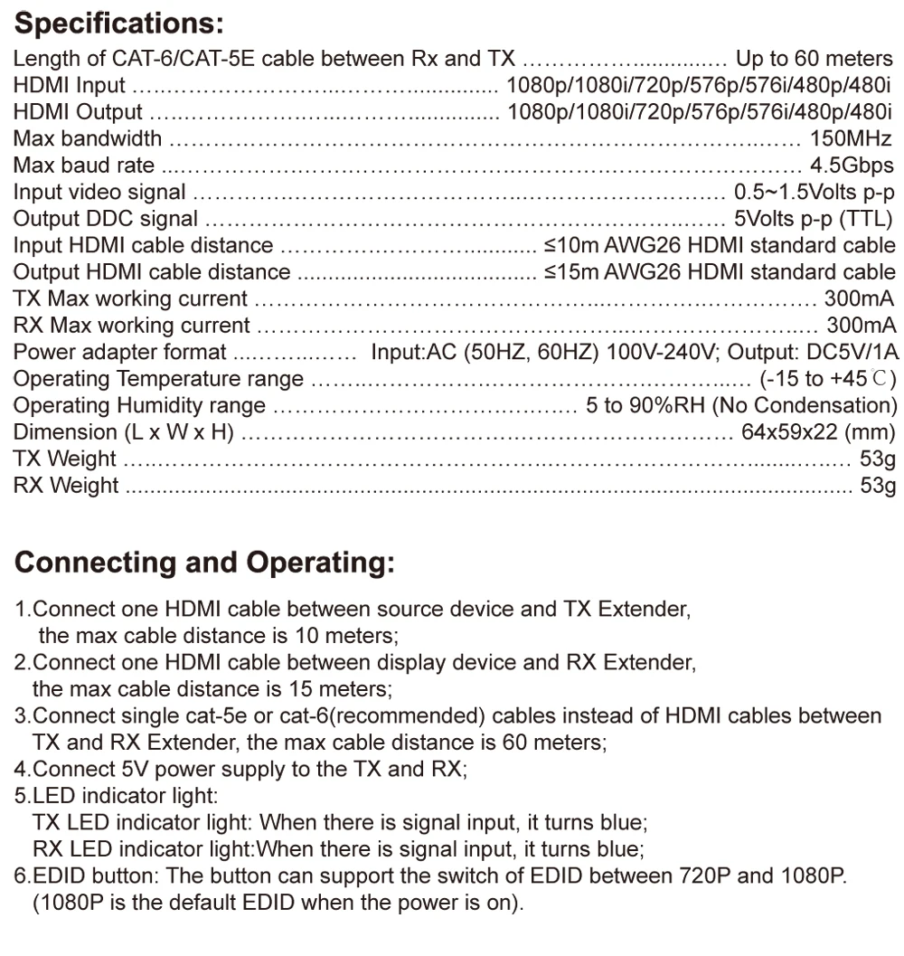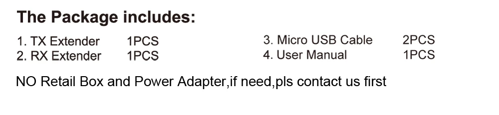 4) Por defecto, NO se incluye enchufe de alimentación ni caja de venta al por menor, si es necesario, contáctenos primero.El paquete incluye1 x transmisor de extensión HDMI (Opciones)
