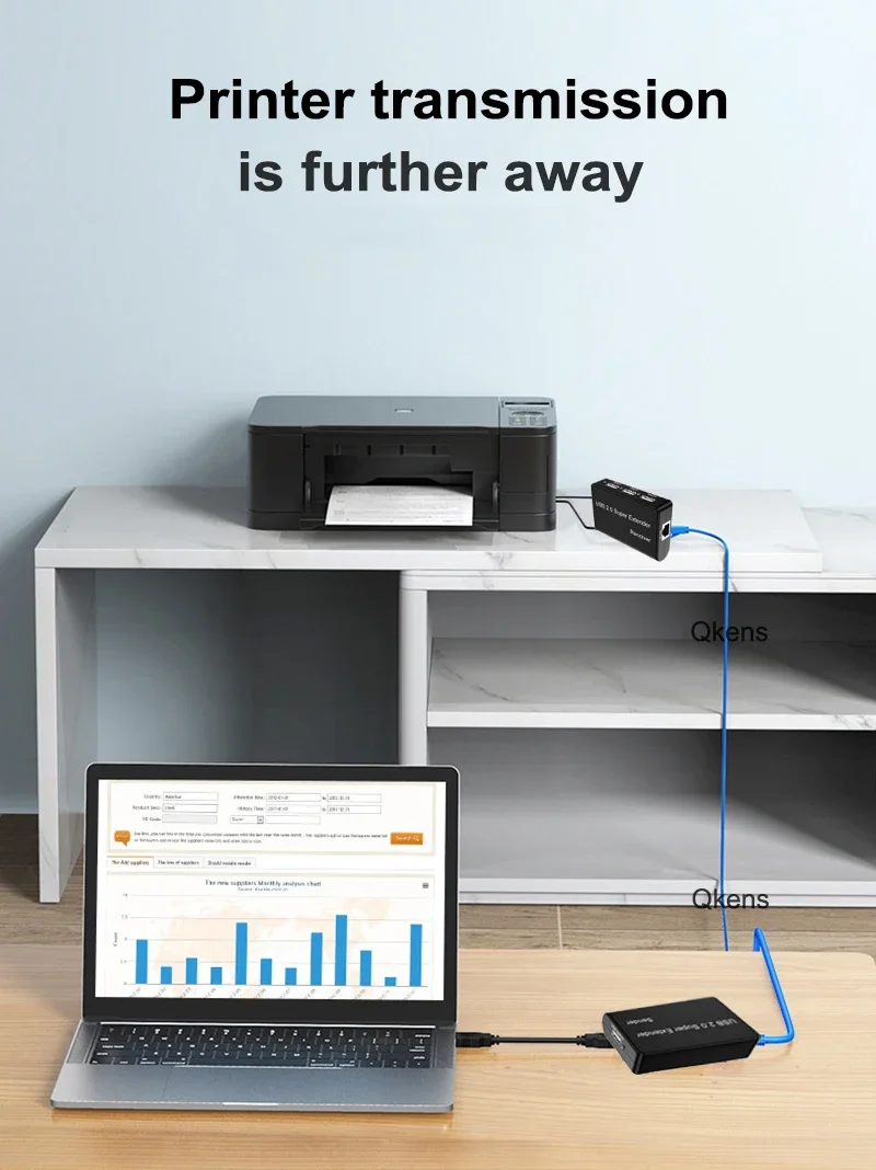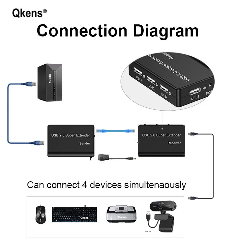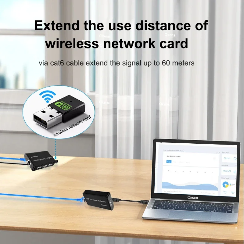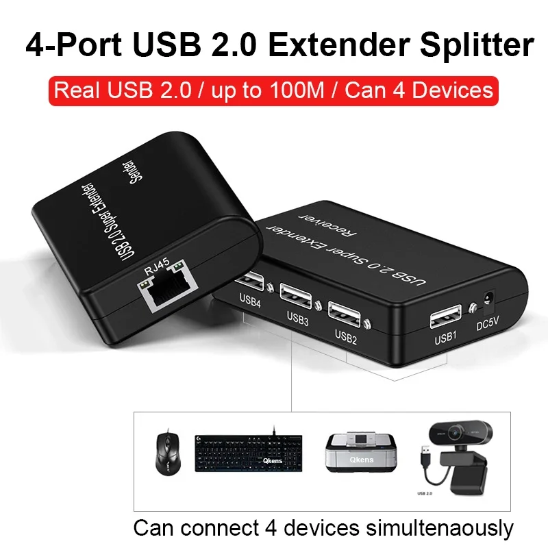 Comprar Extensor de Cable de red USB 2,0 a través de RJ45 Cat5e Cat6, Cable Ethernet de 100m, 4 puertos para cámara web, ratón, teclado, escáner de impresora
