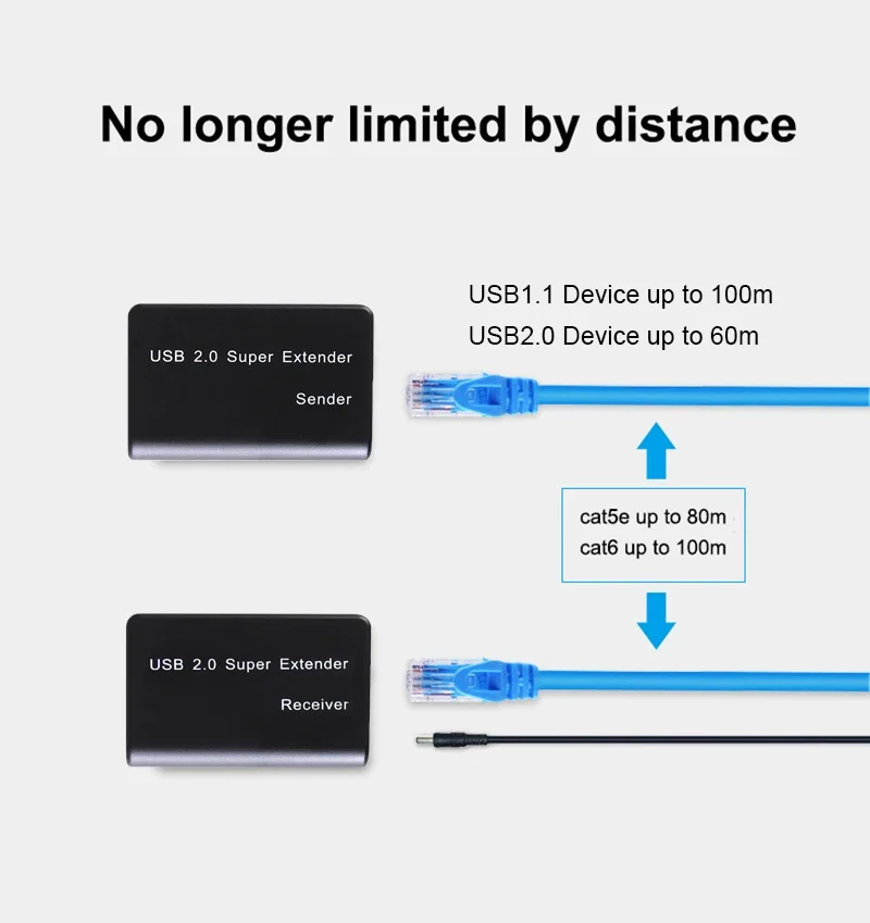 Hasta 80m Extiende una señal USB 2,0 hacia arriba