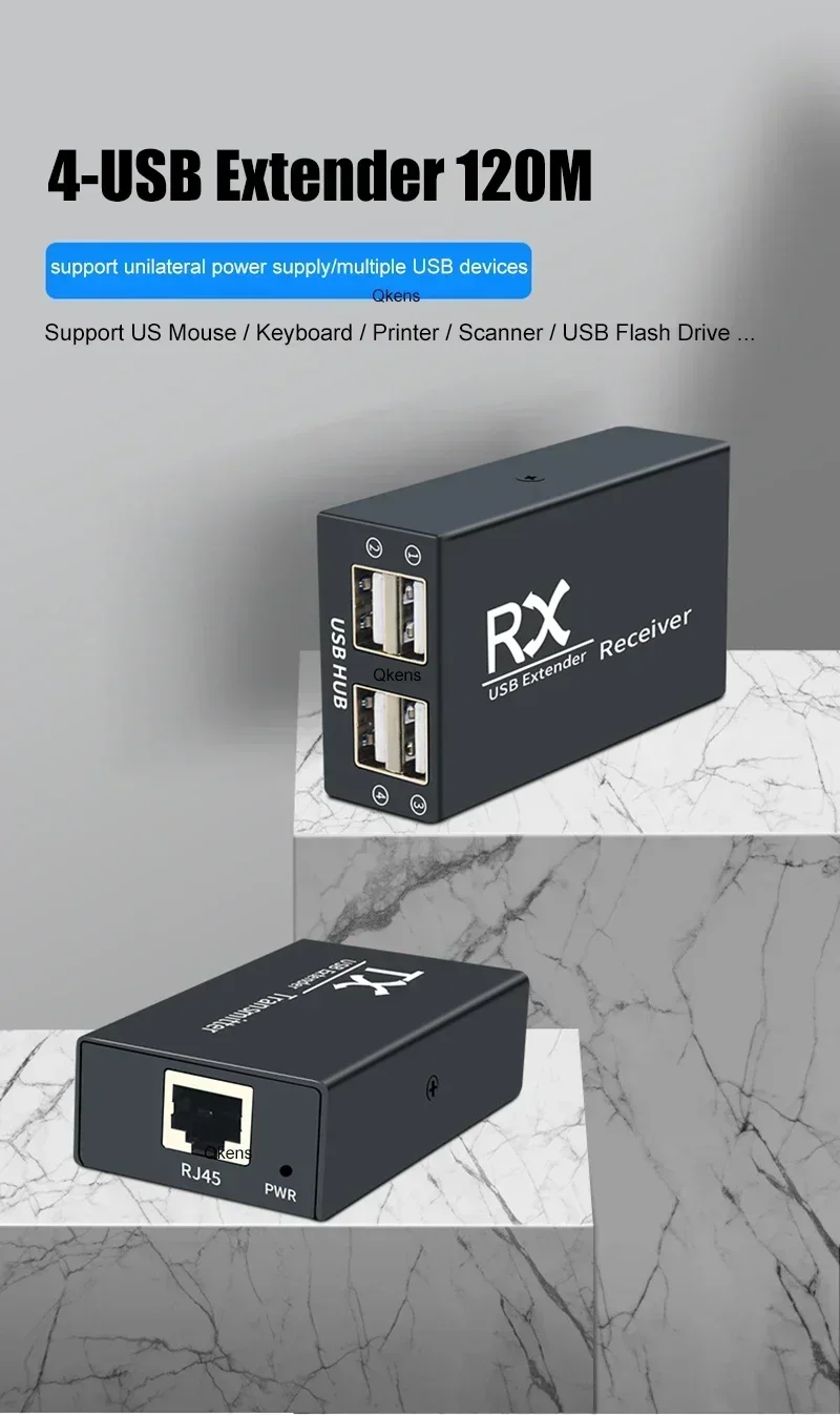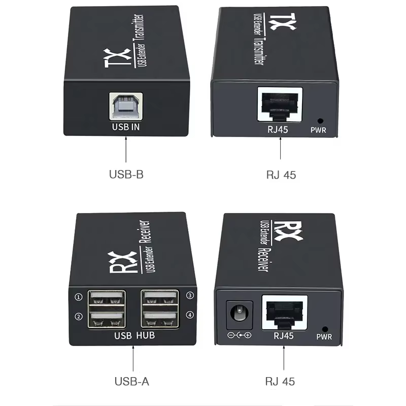 Comprar Extensor de concentrador USB de 4 puertos de 120M a través de Cable Ethernet RJ45 CAT6, Kit de transmisor y receptor para disco U, ratón, teclado, impresora y escáner