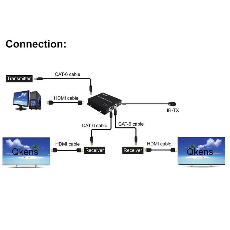 Este extensor HDMI de 60M utiliza un solo cable CAT-6 (recomendado) en lugar del cable HDMI, para extender el