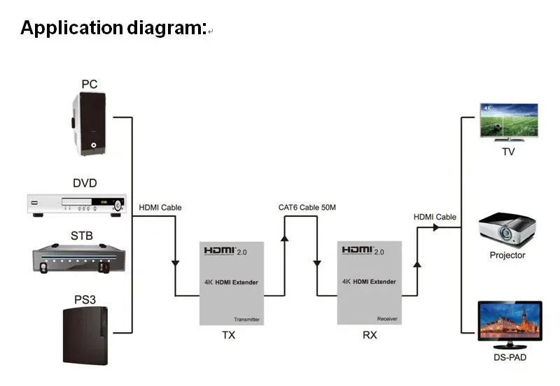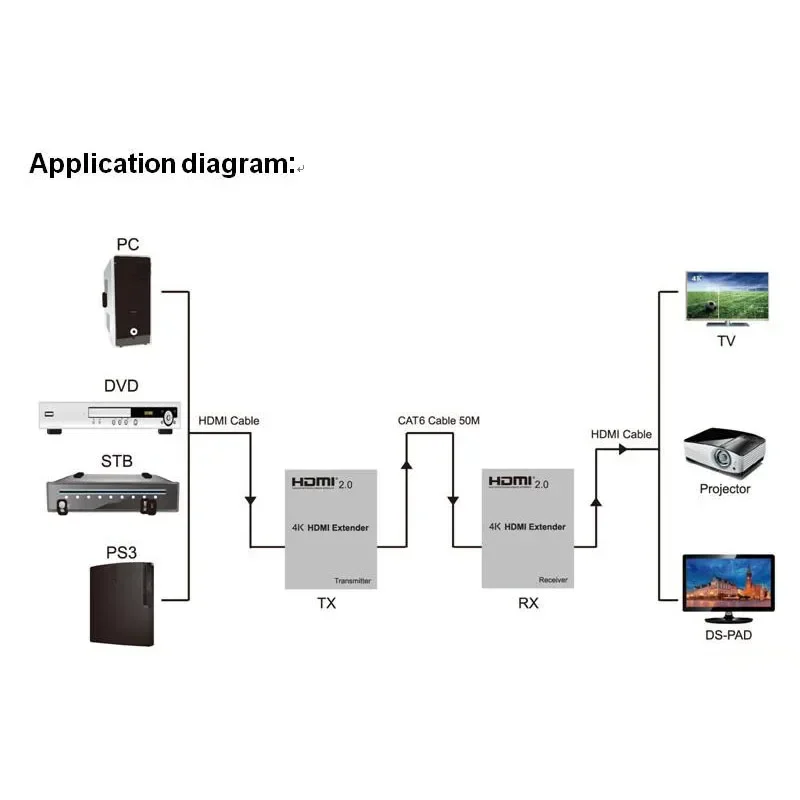 Comprar Extensor Ethernet 4K, 60Hz, HDMI 2,0, 50M vía Cable Rj45 Cat6, transmisor y receptor de vídeo para cámara PS4, ordenador portátil, PC a Monitor de TV