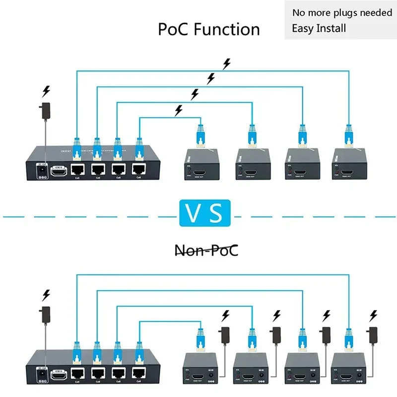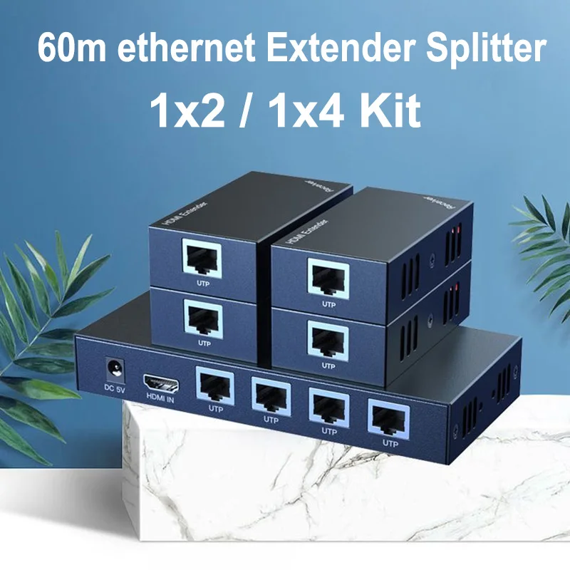 Comprar Extensor Ethernet HDMI 1x2 1x4 de 60m, divisor HDMI de 1 a 4, 1 transmisor y distribuidor de vídeo receptor 2 o 4 a través del Cable RJ45 Cat6