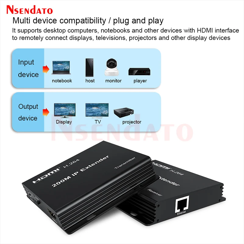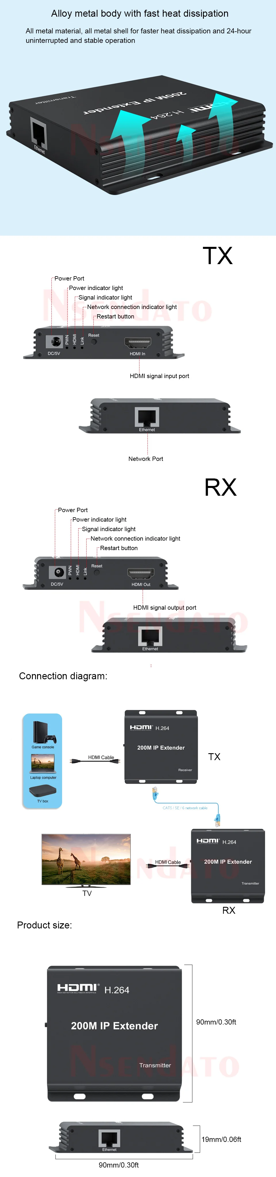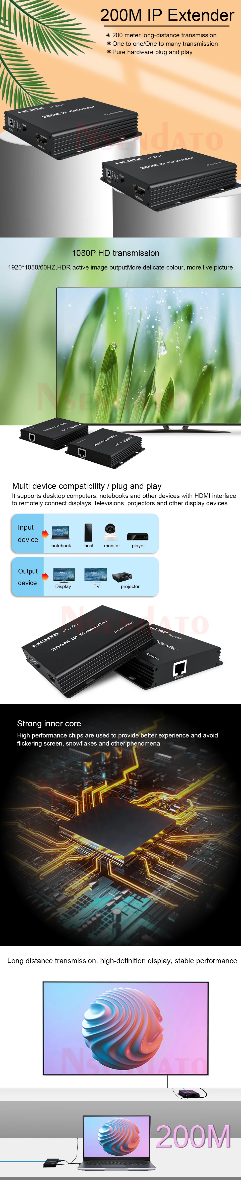 200m HDMI IP Ethernet Extender Multicast Over Network Cable RJ45 Cat5e/6 HDMI Video Transmisor y receptor Splitter Converter