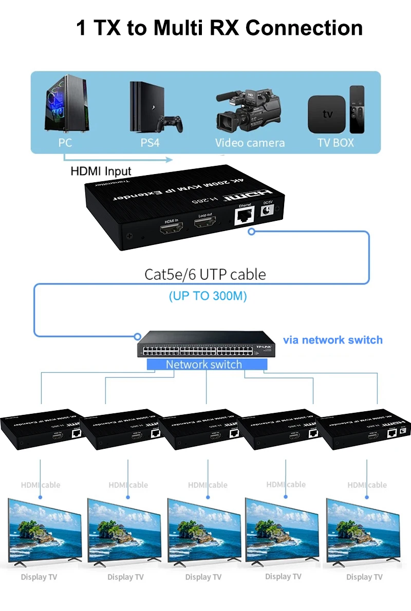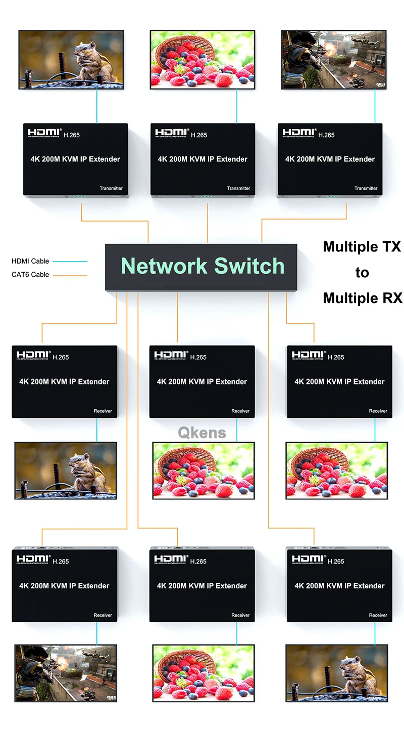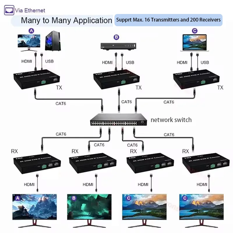 Comprar Extensor Ethernet IP H.265 4K 200m HDMI KVM a través de Cable RJ45 Cat6, transmisor de vídeo, receptor, convertidor divisor a través del interruptor de red
