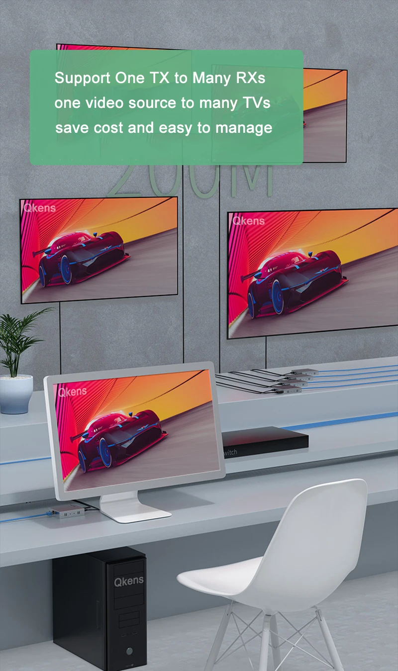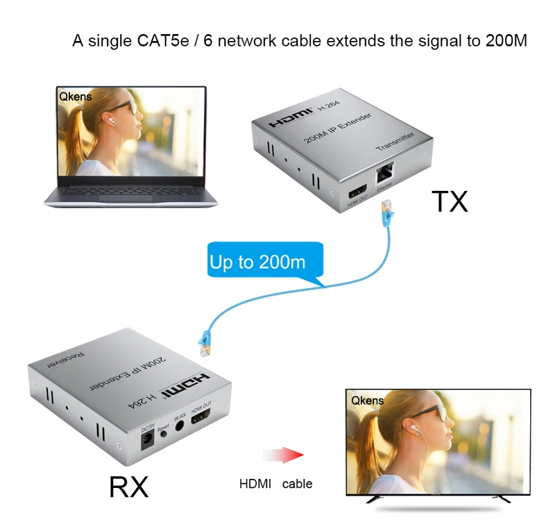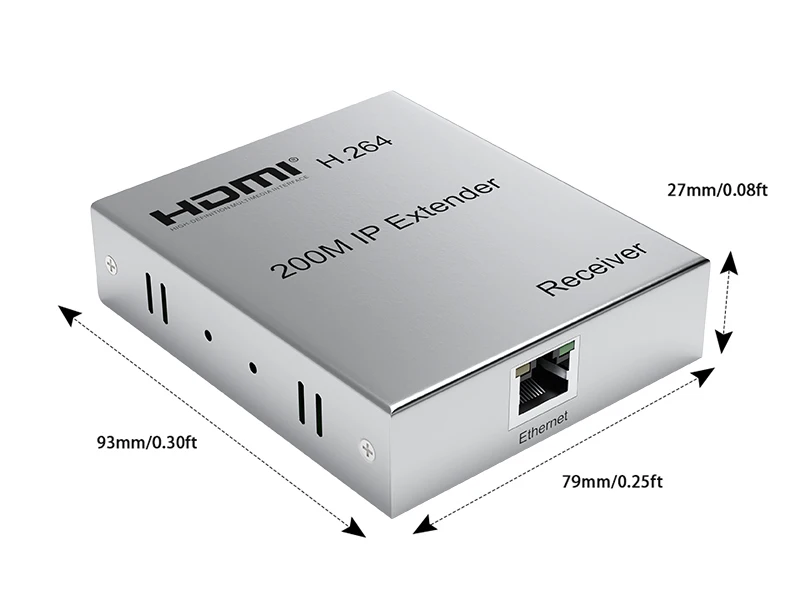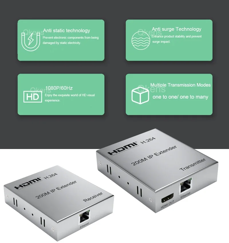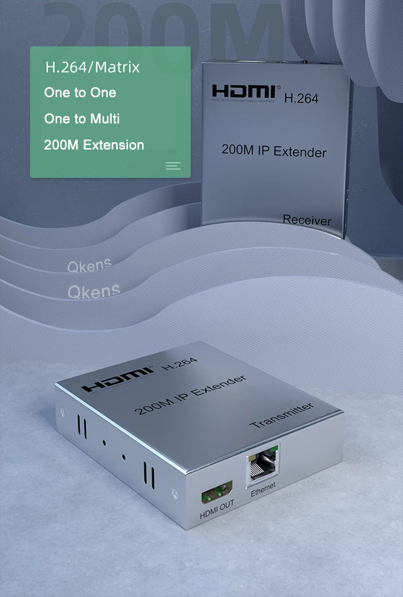 Este extensor IP HDMI de 200 M se basa en el estándar TCP/IP.Transmite tu pantalla HD con alta resolución hasta 200 metros (sobre cable cat6) de distancia de su DVD o fuente de computadora usando un cable CAT5e/6. Al mismo tiempo, Es conveniente transmitir una fuente de audio y video HDMI en modo punto a punto o en modo punto a multipunto.