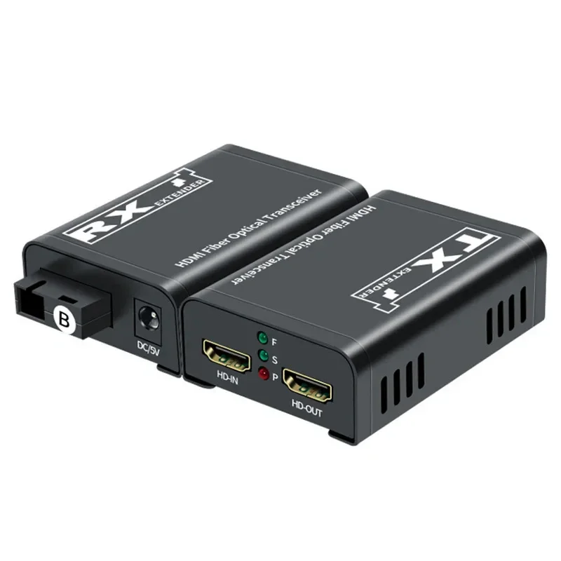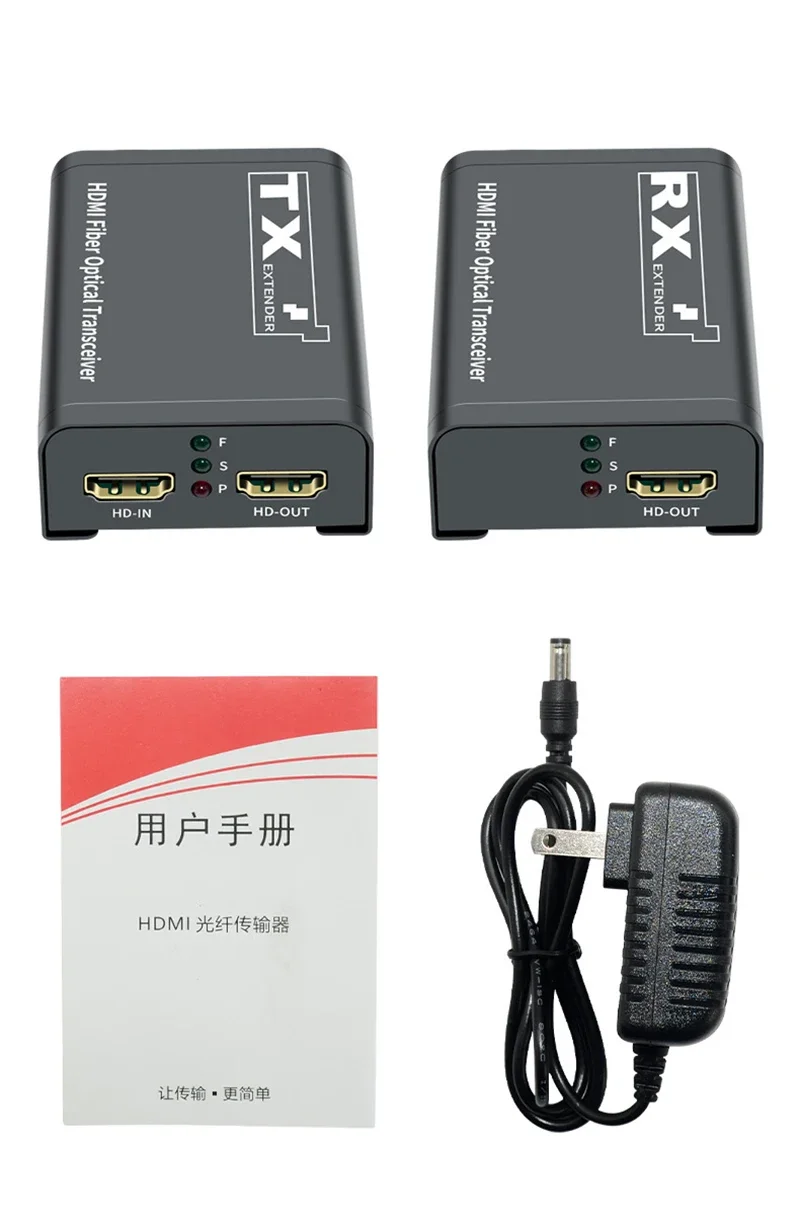 Proceso de instalación: 1. Conecte las fuentes de alimentación DC/5V proporcionadas a la toma de corriente del transmisor y el receptor. 2.Conecte un cable HDMI entre el puerto de entrada HDMI del transmisor y el puerto de salida HDMI de la fuente de vídeo. 3. Conecte el puerto de salida HDMI del receptor al dispositivo de visualización con un cable HDMI, conecte el puerto de fibra del transmisor al puerto de fibra del receptor utilizando una única fibra óptica 4.Encendido el transmisor y el receptor Contenido del paquete: