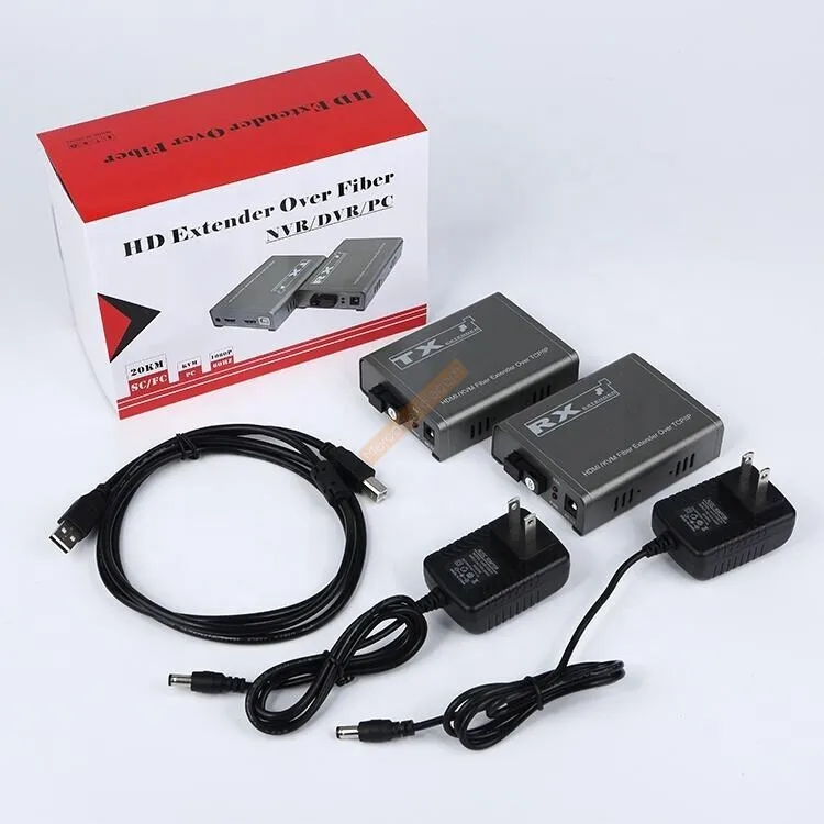 Comprar Extensor de fibra KVM HDMI con puerto USB2.0 sobre SC/FC, Cable de fibra óptica HDMI a fibra de vídeo, transmisor de Audio, convertidor, 20Km