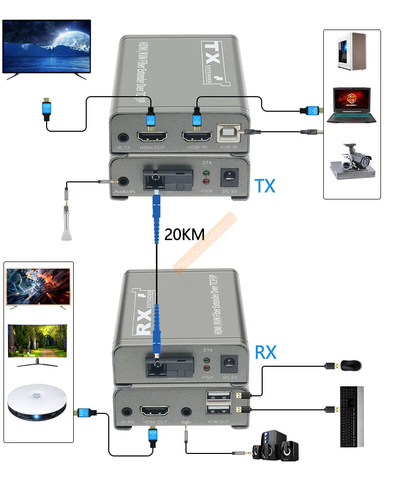 20Km HDMI KVM Fiber Extender Transceiver HDMI USB extender over SC Fiber Optical Cable HDMI to Fiber Video Transmitter Converter