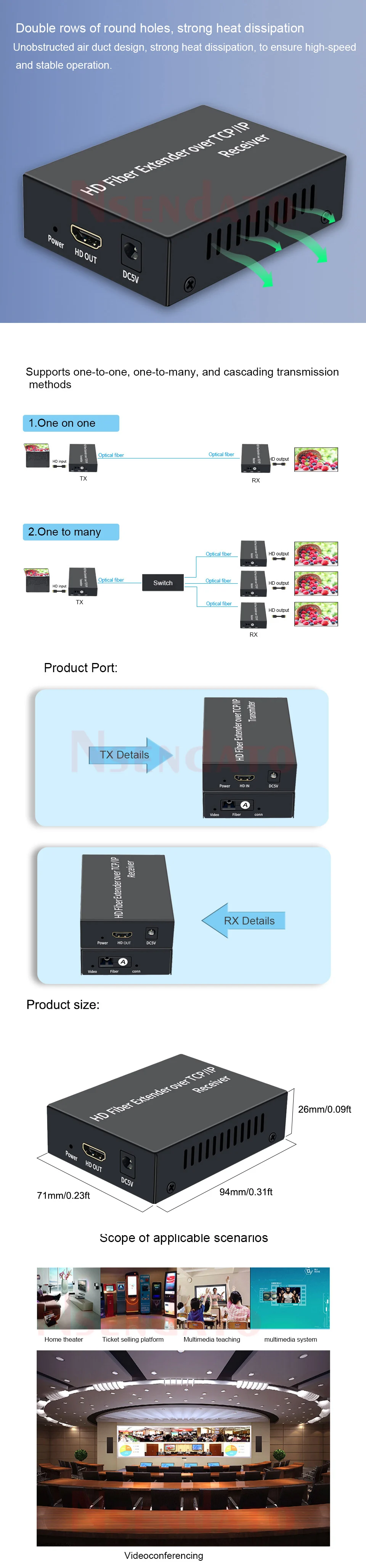 Nota:1.TX RX incluyendo el transmisor + receptor; ¡RX es solo el receptor, pero la descripción es para el conjunto completo! ¡Por favor, selecciónelo de acuerdo con su solicitud!2. Hay dos versiones, una es de 20km, la otra es de 3km, ¡así que seleccione el tipo de acuerdo con su solicitud!Introducción:Características:Un par como módulo funcional completo, sin necesidad de configuración.El cable de fibra puede sustituir al cable HDMI para lograr la transmisión a larga distancia.La resolución de vídeo puede ser de hasta 1920*1080P a 60Hz.Velocidades de señalización de hasta 1.65bps para una pantalla de 1920*1080P @ 60Hz.Cumple con HDCPAdmite audio sin comprimir como LPCMAdmite audio comprimido como DTS Digital, Dolby Digital (incluidos los sistemas de audio DTS y Dolby, incluidos los formatos de audio DTS Digital y Dolby).El Nsendato del emisor con salida compatible con HDMI, salida de audio y salida Ir.El receptor Nsendato con salida compatible con HDMI, salida de audio y entrada Ir.Paquete:TransmisorReceptorAdaptador DCCable IRManual