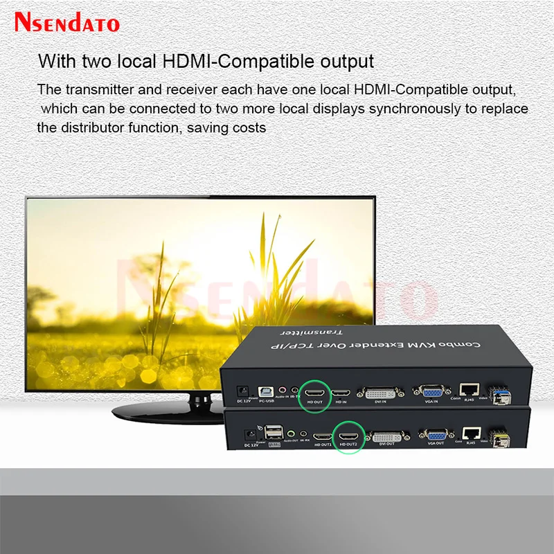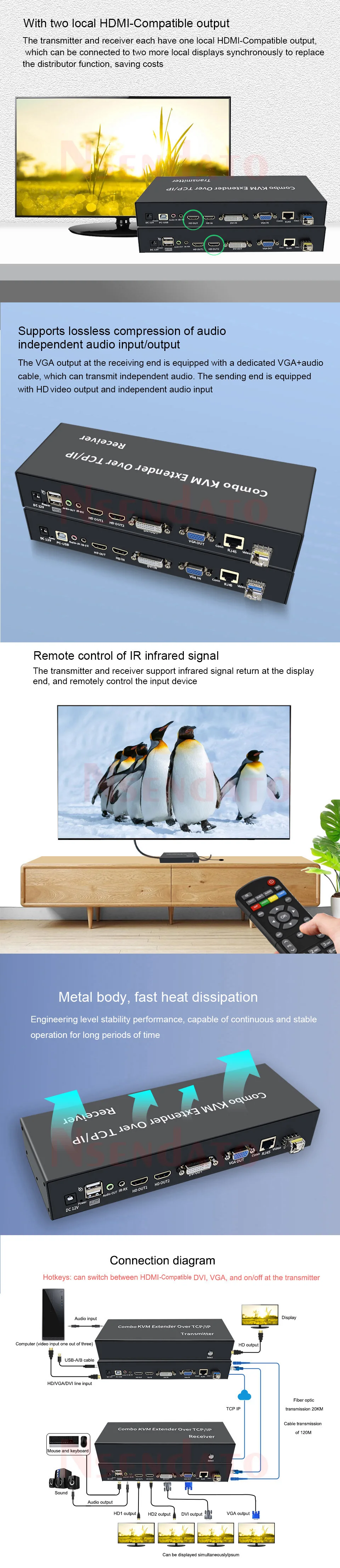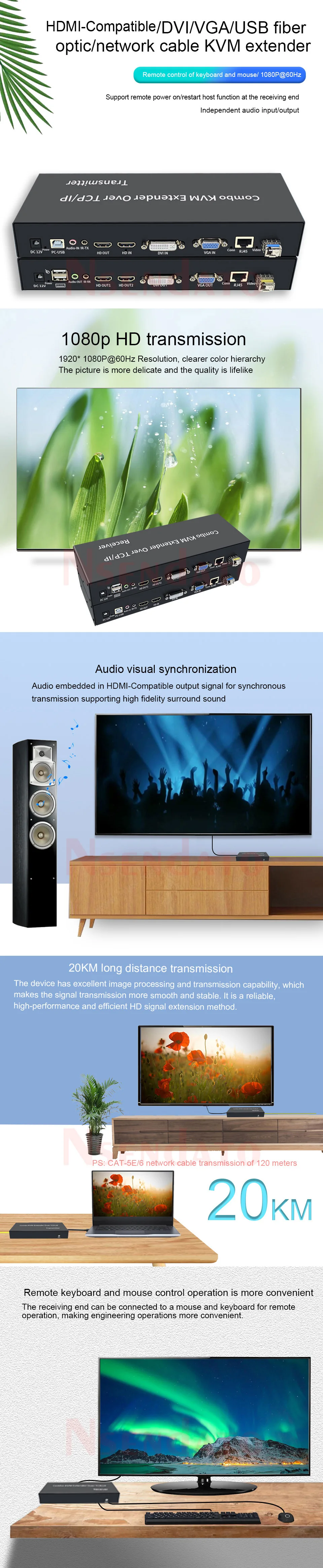20Km HDMI KVM fibra extensor sobre SC fibra óptica HDMI DVI VGA USB Video transceptor KVM extensor RJ45 120M para teclado ratón