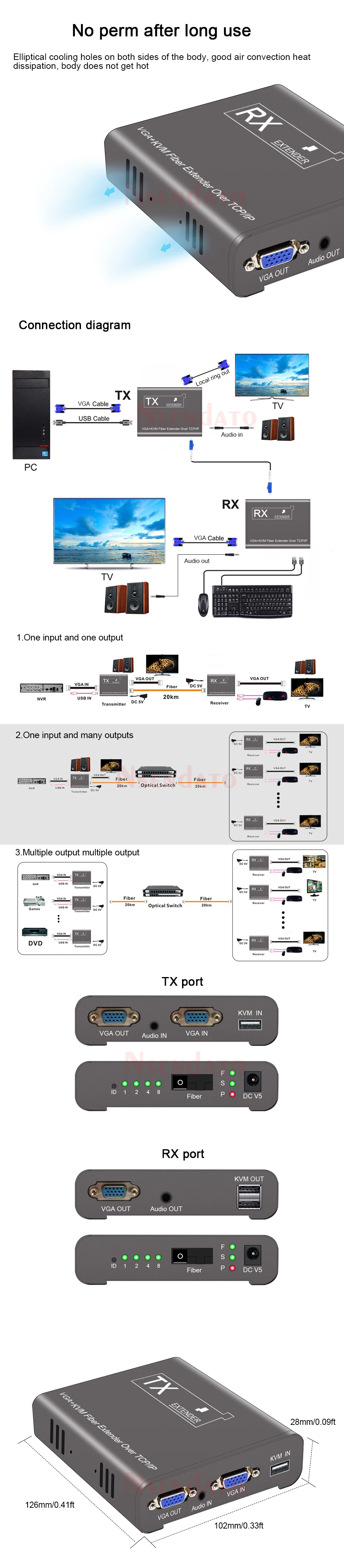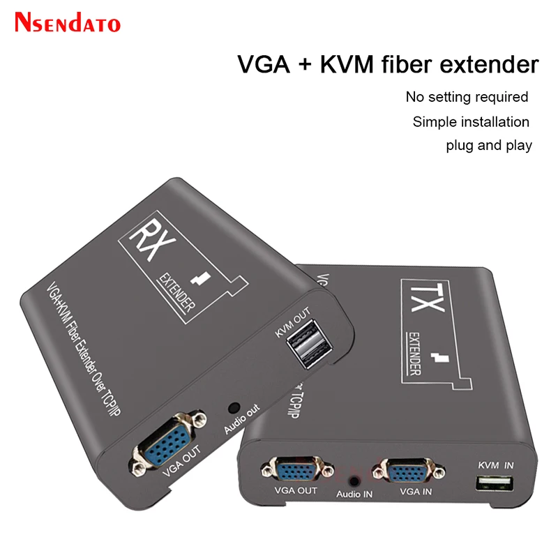 Comprar Extensor de fibra óptica VGA KVM de 20Km sobre TCP IP LC SC fibra USB 2,0 KVM compartir teclado ratón interruptor para PS4 DVD Monitor PC TV