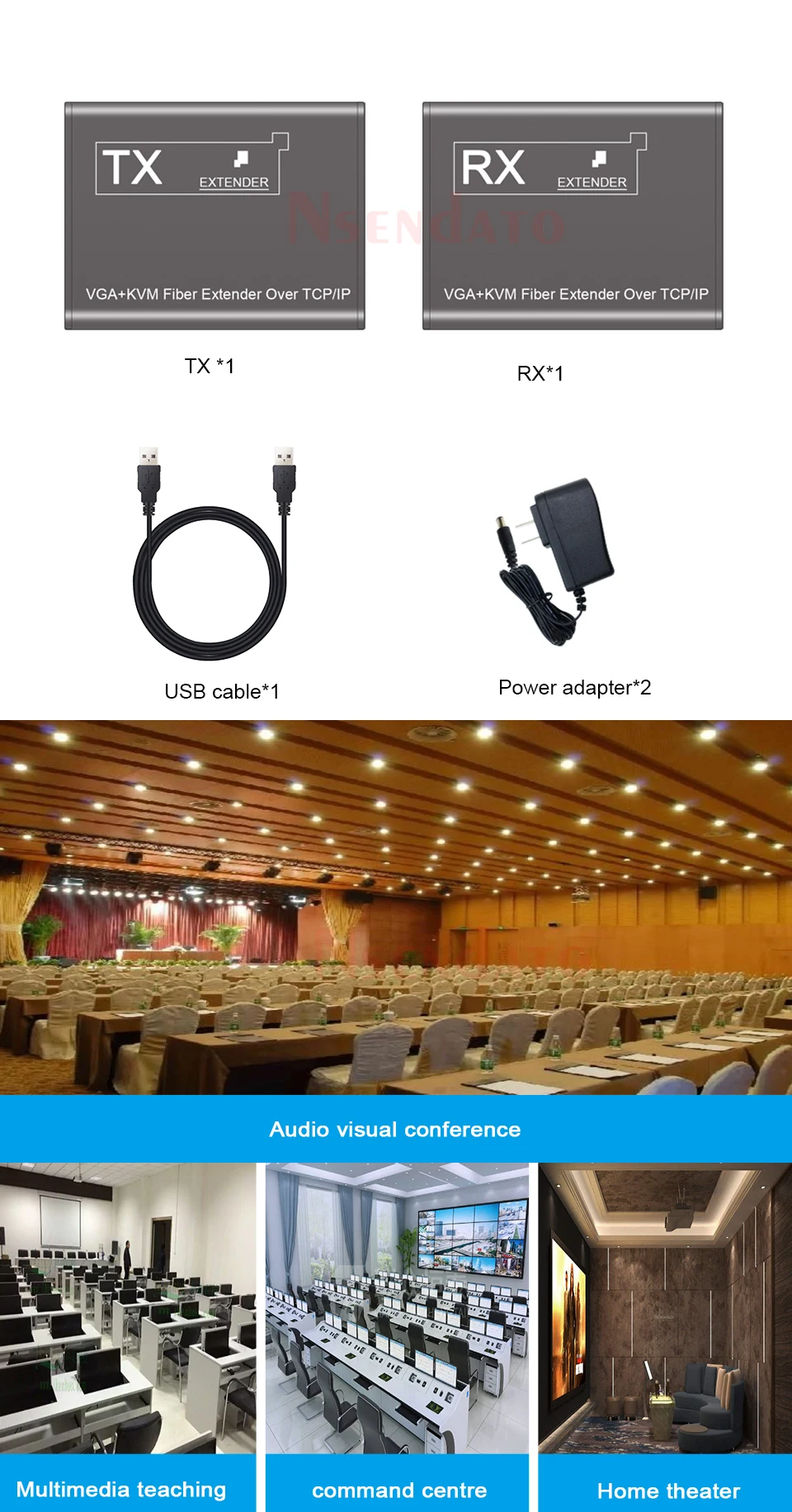 1. Transmite señales de audio y vídeo VGA de hasta 20 km a través de una sola fibra