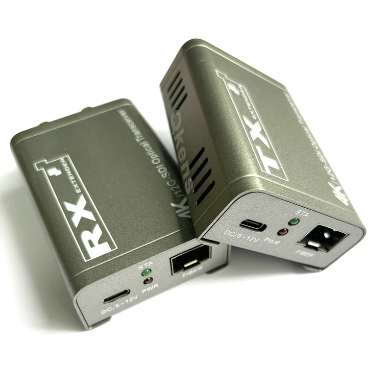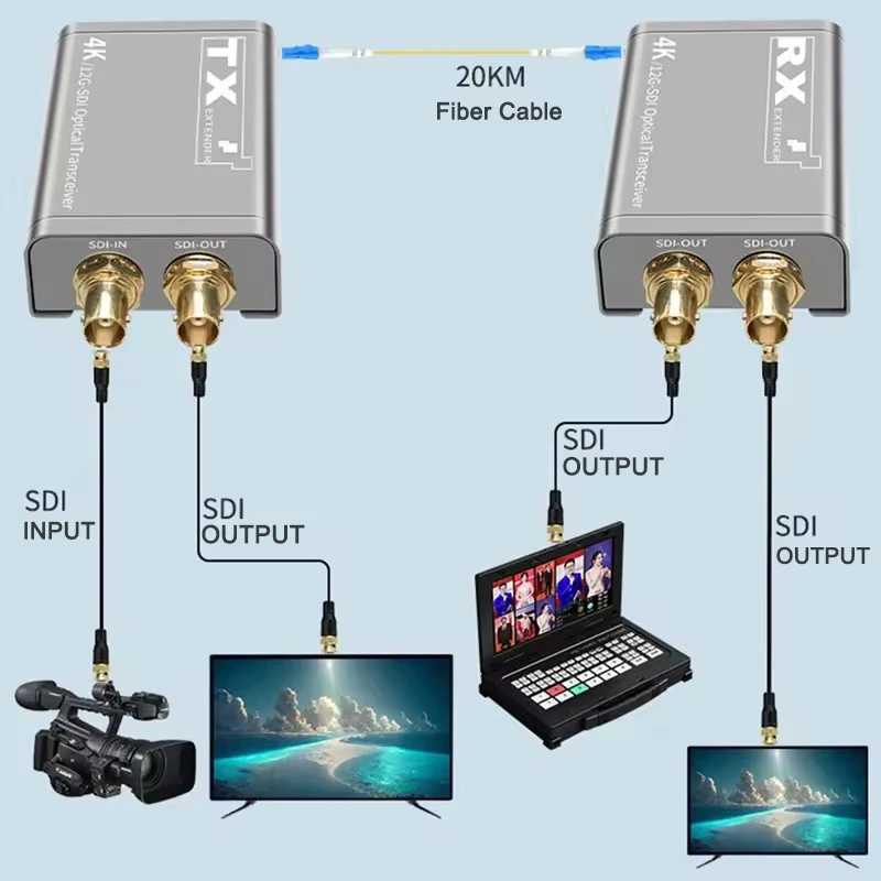 1. Transmisión de larga distancia de señales de audio y vídeo 4K/12G-SDI a través de fibra óptica, hasta 3-20 km
