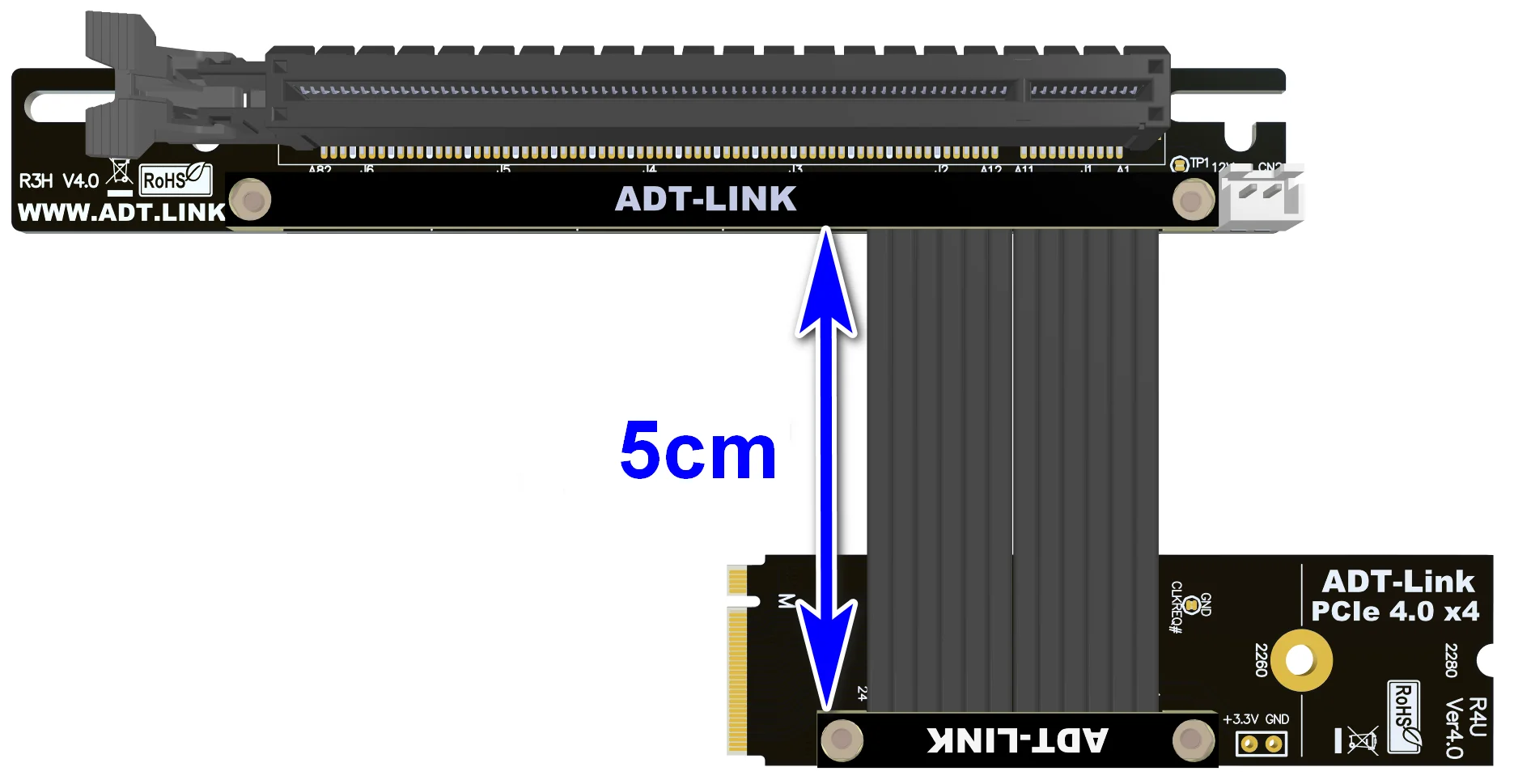Comprar Extensor de gráficos ADT PCI-E 4,0 16x PCIe x16 4,0 A M2 M.2 NVMe M key-m SSD, tarjeta de vídeo, extensión GPU Riser, adaptador de puente de 64Gbps