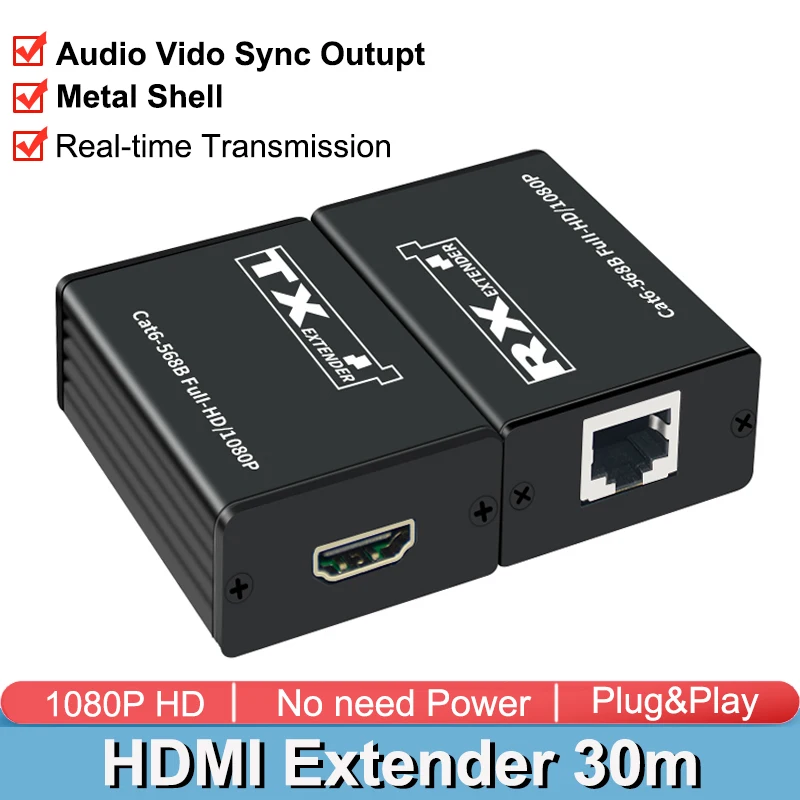 Comprar Extensor HDMI de 30M 1080p para PC a TV, receptor transmisor sobre Cat6 cat7 RJ45, Cable Ethernet, convertidor de Audio y vídeo, compatible con ratón USB
