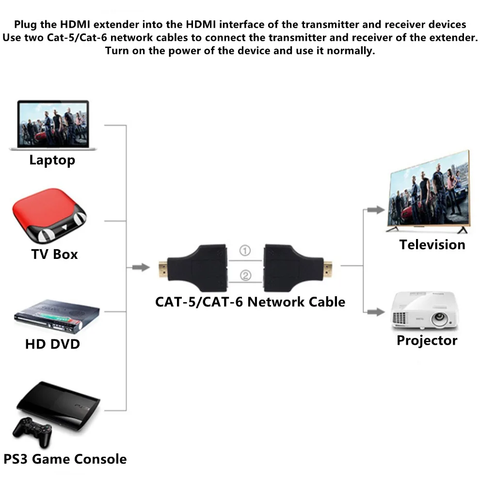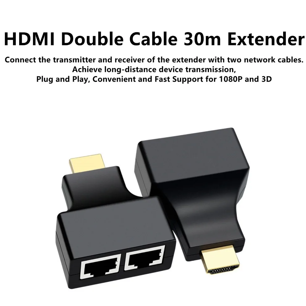 Comprar Extensor HDMI de 30M, extensor Dual RJ45 compatible con HDMI, extensor de red 1080P de CAT5e CAT6, extensor LAN para PS3, TV Box, PC y portátil