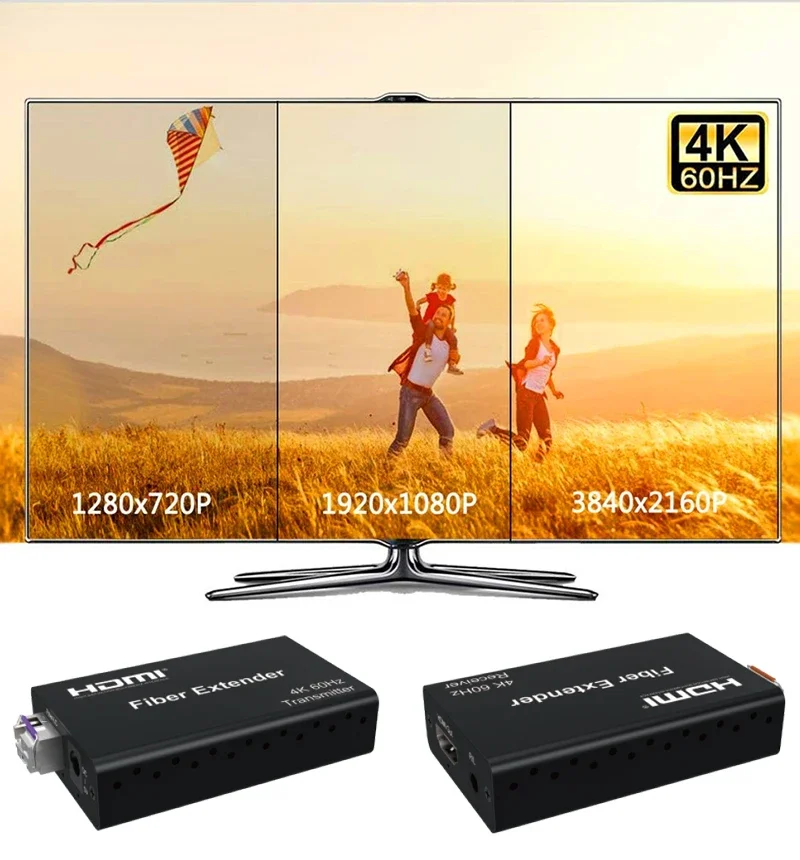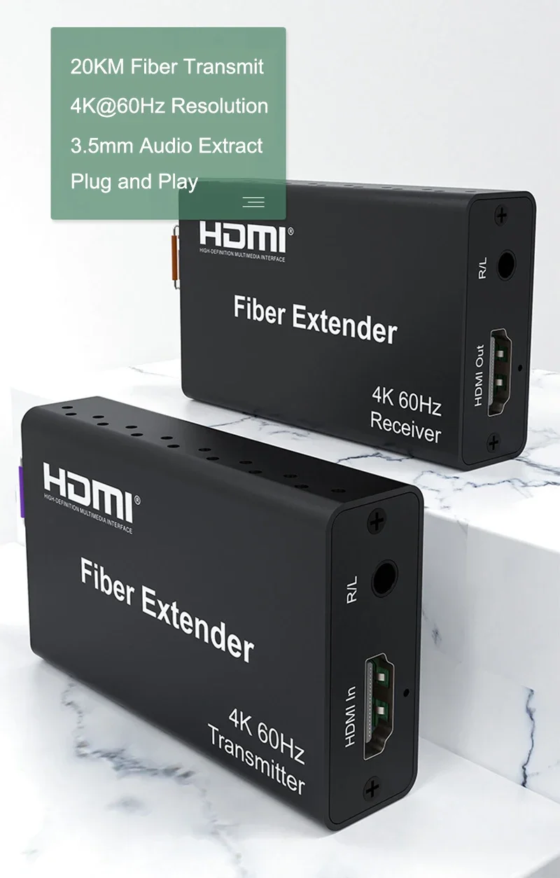transmitir líneas de fibra óptica es una transmisión de señal de bajo costo y más estable.Soporta 4K@60Hz 4:4:4